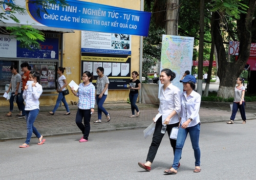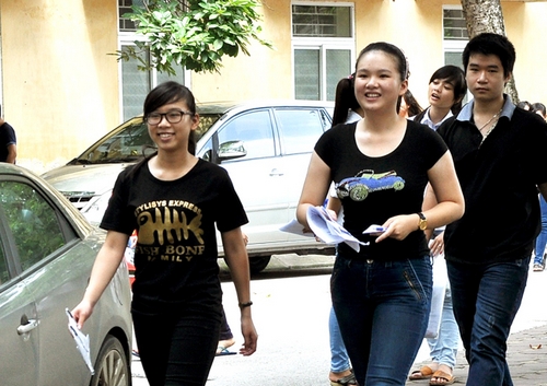 Các thí sinh tự tin trên đường vào phòng thi tại điểm thi ĐH KTQD