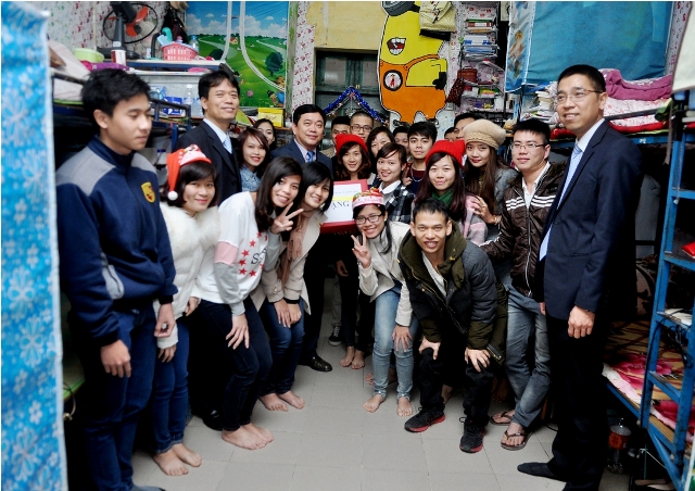 Trước đó, Ban lãnh đạo Nhà trường do GS.Trần Thọ Đạt – Hiệu trưởng, Bí thư Đảng ủy cùng các đồng chí lãnh đạo nhà trường đã đi thăm và tặng quà cho một số phòng nội trú của lưu học sinh, NCS Lào, Campuchia, sinh viên Trung Quốc và Việt Nam đang học tập tại trường. Đoàn đại biểu lãnh đạo Nhà trường cũng gửi những lời chúc Giáng sinh và Năm mới tốt đẹp nhất, chúc các em phấn đấu học tập tốt và nhiệt tình thamgia các hoạt động Đoàn, Hội của nhà trường.