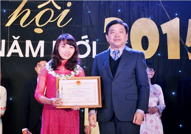 Đồng chí Doãn Hồng Hà và PGS.TS.Phạm Hồng Chương trao giấy khen cho những cá nhân, tập thể có thành tích xuất sắc trong năm TNTN 2014