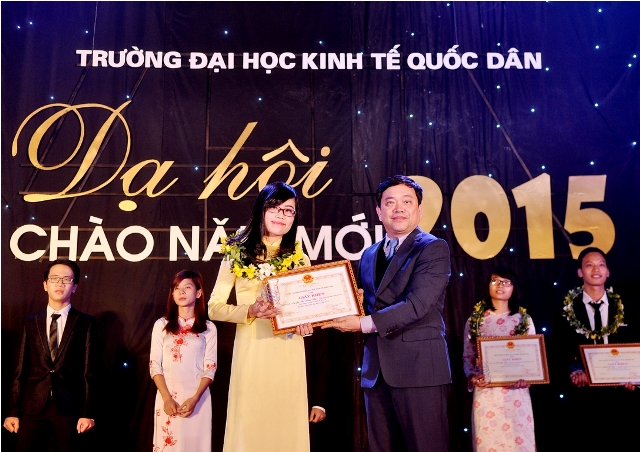 GS.TS Trần Thọ Đạt – Hiệu trưởng trao thưởng cho các sinh viên xuất sắc năm 2014