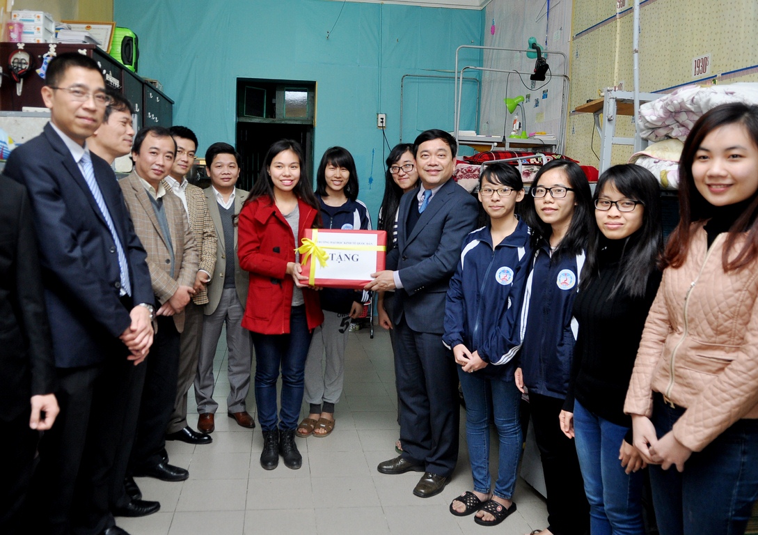 Trước đó, Ban lãnh đạo Nhà trường do GS.Trần Thọ Đạt – Hiệu trưởng, Bí thư Đảng ủy cùng các đồng chí lãnh đạo nhà trường đã đi thăm và tặng quà cho một số phòng nội trú của lưu học sinh, NCS Lào, Campuchia, sinh viên Trung Quốc và Việt Nam đang học tập tại trường. Đoàn đại biểu lãnh đạo Nhà trường cũng gửi những lời chúc Giáng sinh và Năm mới tốt đẹp nhất, chúc các em phấn đấu học tập tốt và nhiệt tình thamgia các hoạt động Đoàn, Hội của nhà trường.