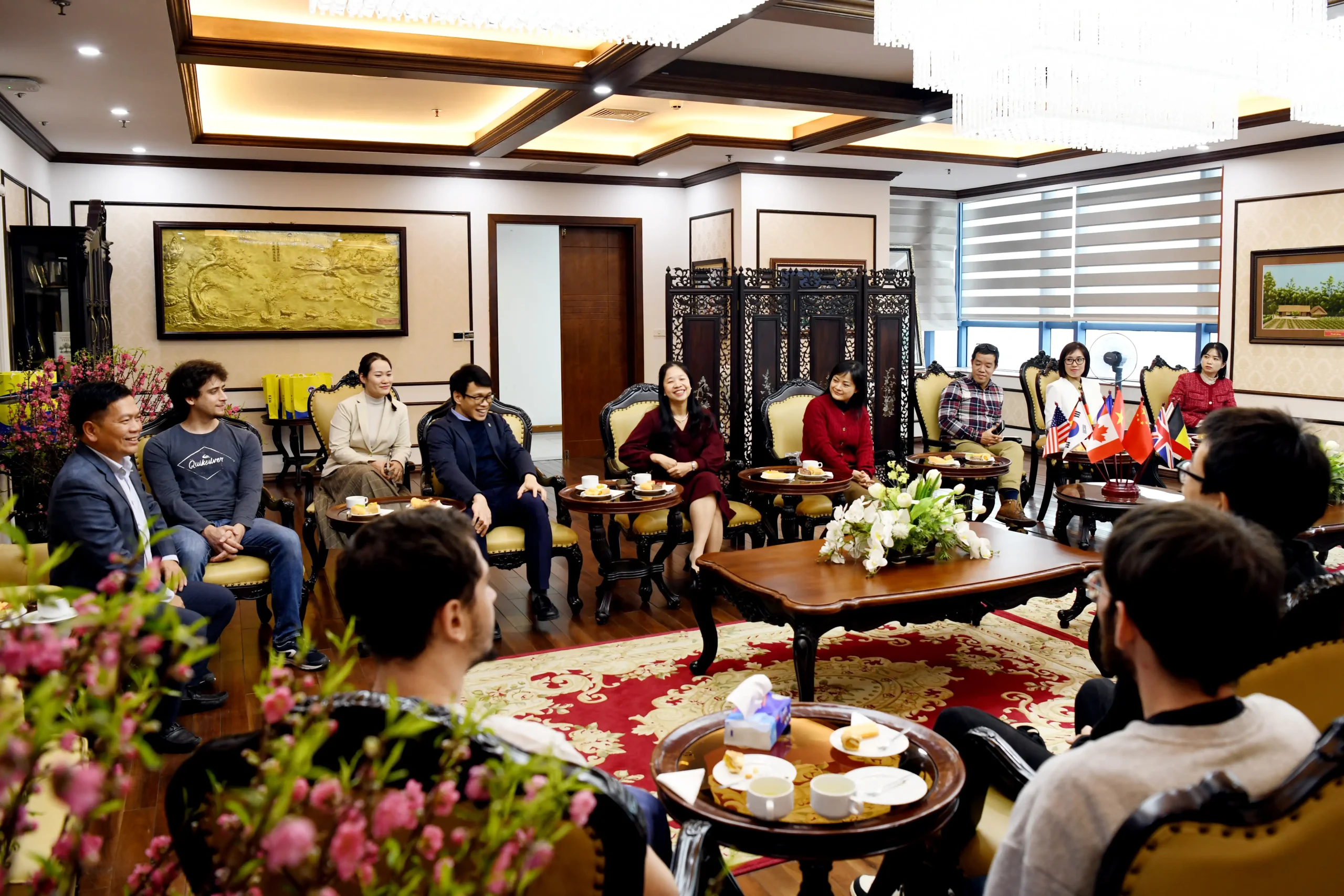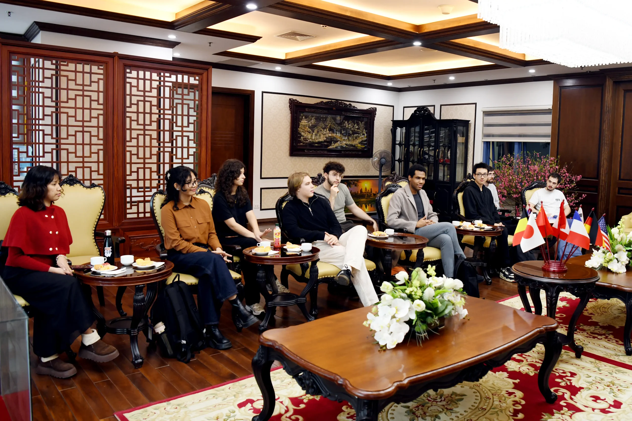 Tham dự chương trình có: GS.TS Nguyễn Thành Hiếu – Phó Giám đốc Đại học; TS. Đào Thanh Tùng – Trưởng phòng Hợp tác Quốc tế; PGS.TS Hà Minh Hoàng – Trưởng khoa Khoa học dữ liệu và Trí tuệ nhân tạo; TS. Trịnh Thị Thu Giang – Phó Viện trưởng Viện Đào tạo Quốc tế; cùng các cán bộ giảng viên của Đại học và sinh viên quốc tế trao đổi.