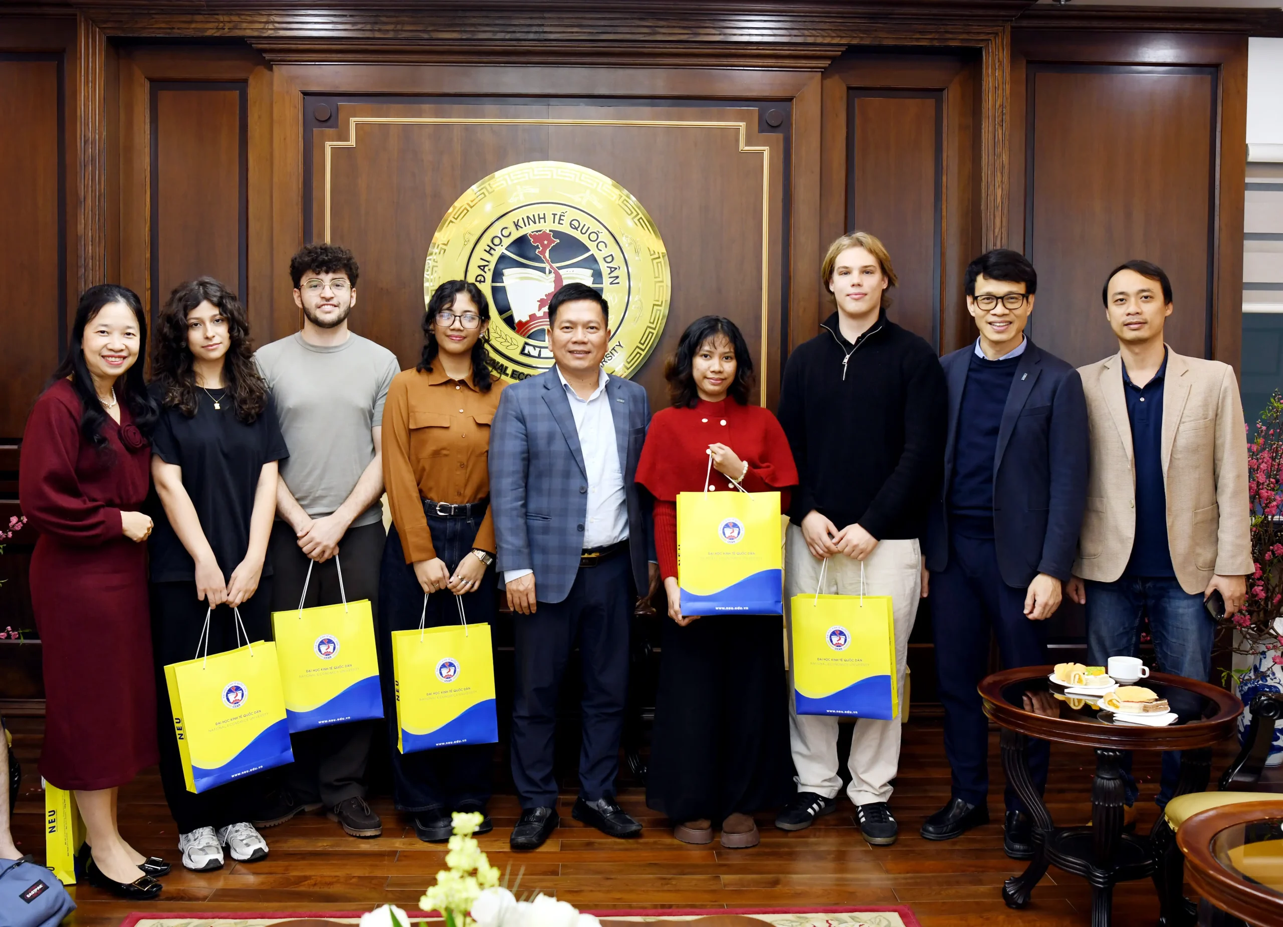 Ngày 05/02/2026, Đại học Kinh tế Quốc dân đã tổ chức buổi Gặp mặt sinh viên quốc tế trao đổi nhân dịp Tết Bính Ngọ, qua đó thể hiện sự quan tâm sâu sắc của Đảng ủy, Ban Giám đốc đối với cộng đồng sinh viên quốc tế đang học tập, nghiên cứu tại NEU trong dịp Tết cổ truyền Việt Nam.
