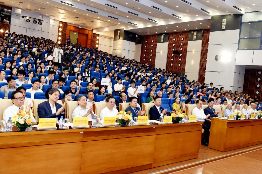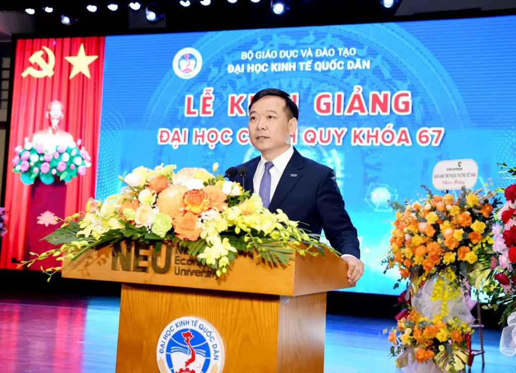Giám đốc Đại học Kinh tế Quốc dân cũng nhắc lại lời căn dặn của Tổng Bí thư Tô Lâm tới học sinh, sinh viên tại Lễ kỷ niệm 80 năm truyền thống ngành Giáo dục và khai giảng năm học mới 2025-2026: Học sinh, sinh viên phải nuôi dưỡng chí lớn, khát vọng lớn, học tập và rèn luyện để trở thành công dân toàn cầu, từng bước hội nhập chuẩn mực quốc tế nhưng luôn giữ vững bản sắc và tâm hồn Việt Nam.