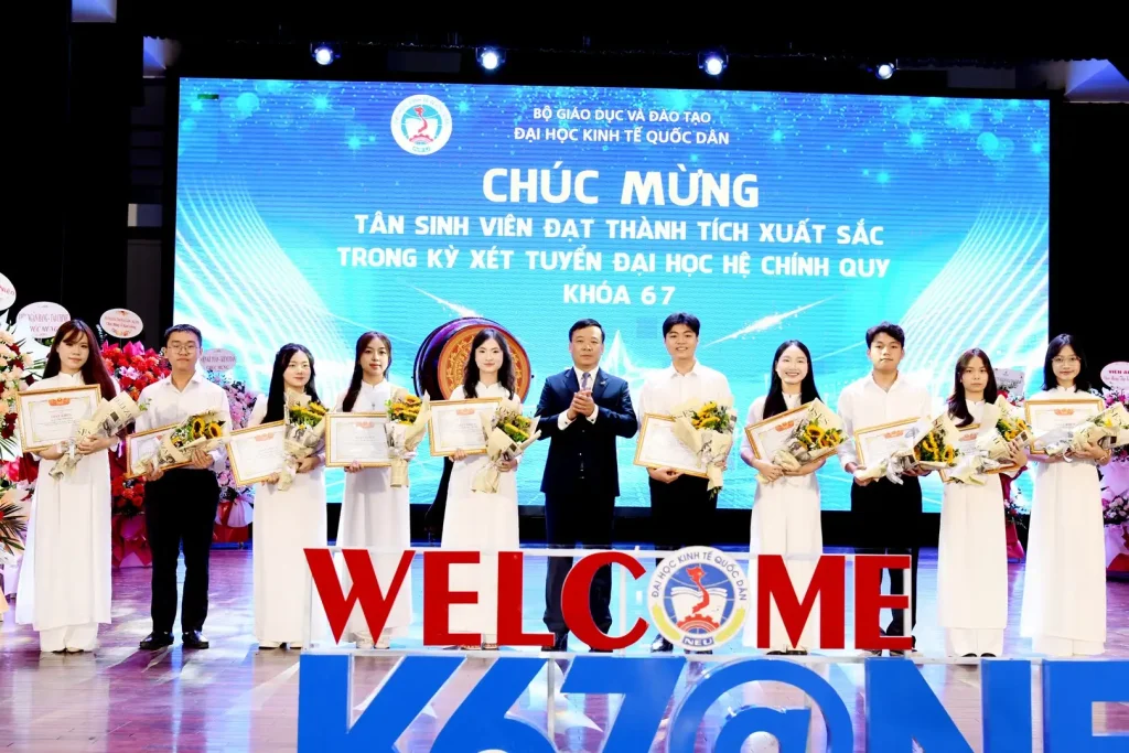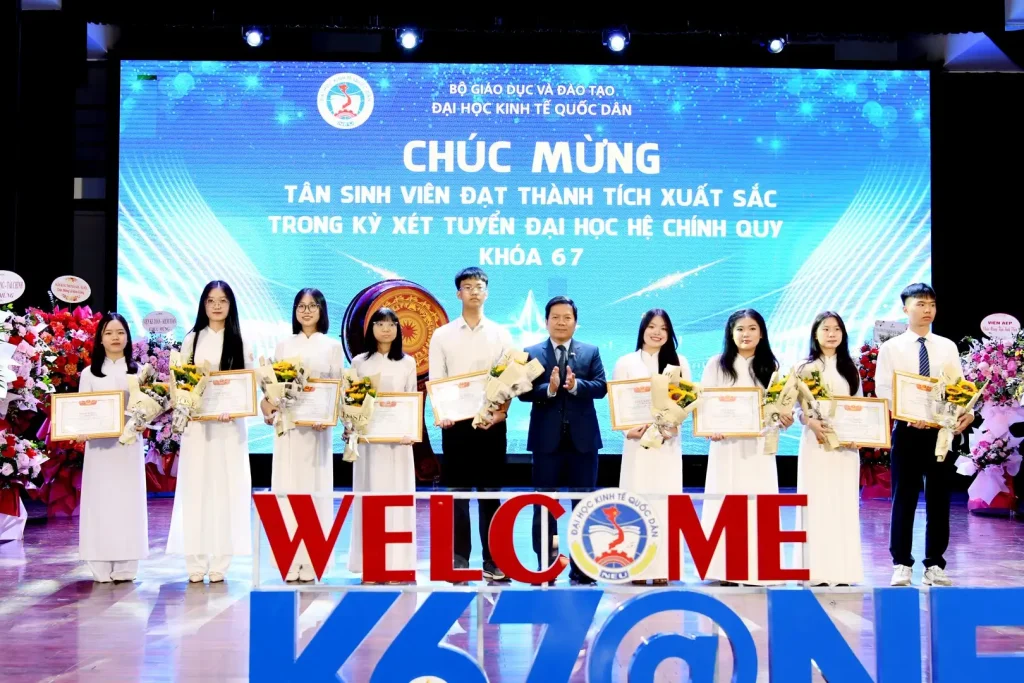 Nhằm tuyên dương, khen thưởng và động viên kịp thời những tân sinh viên khóa 67 đạt thành tích xuất sắc trong kỳ xét tuyển đại học chính quy, Giám đốc Đại học Kinh tế Quốc dân đã khen thưởng cho 21 sinh viên có điểm xét tuyển cao nhất, 08 sinh viên đạt giải Nhất học sinh giỏi Quốc gia và 01 sinh viên đoạt Huy chương Đồng Tin học Quốc tế.