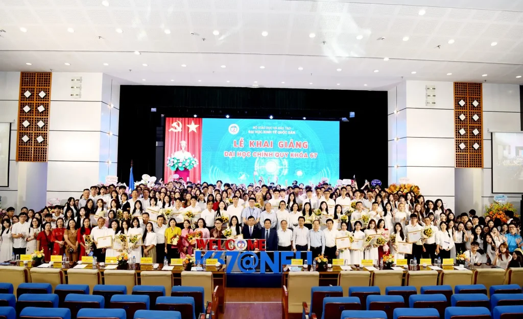 Sáng 13/9/2025, Đại học Kinh tế Quốc dân đã tổ chức Lễ khai giảng đại học chính quy khóa 67, với sự tham dự của gần 800 sinh viên đại diện cho 8.858 tân sinh viên khóa mới.
