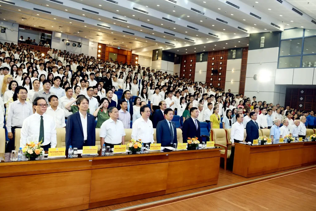 “Từ hôm nay, các em bắt đầu một hành trình mới – hành trình chinh phục tri thức tại ngôi trường danh tiếng này, nơi biết bao thế hệ sinh viên đã từng học tập, trưởng thành và góp phần làm rạng danh đất nước. Các em trở thành thành viên của một cộng đồng “Trí tuệ, Sáng tạo và Khát vọng cống hiến”. Hãy tự hào, nhưng cũng ý thức rõ trách nhiệm để viết tiếp truyền thống vẻ vang ấy bằng chính bản lĩnh và sự nỗ lực của mình”, PGS.TS Bùi Huy Nhượng nhắn nhủ các tân sinh viên.