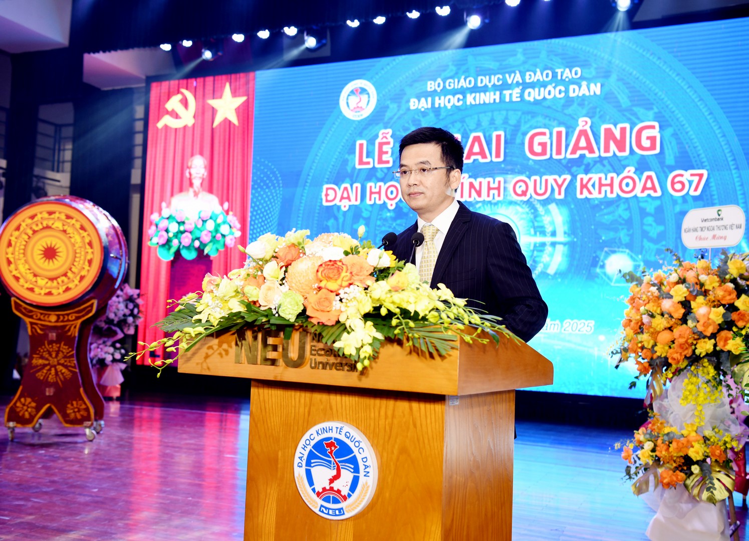Sáng 13/9/2025, Đại học Kinh tế Quốc dân đã tổ chức Lễ khai giảng đại học chính quy khóa 67, với sự tham dự của gần 800 sinh viên đại diện cho 8.858 tân sinh viên khóa mới.