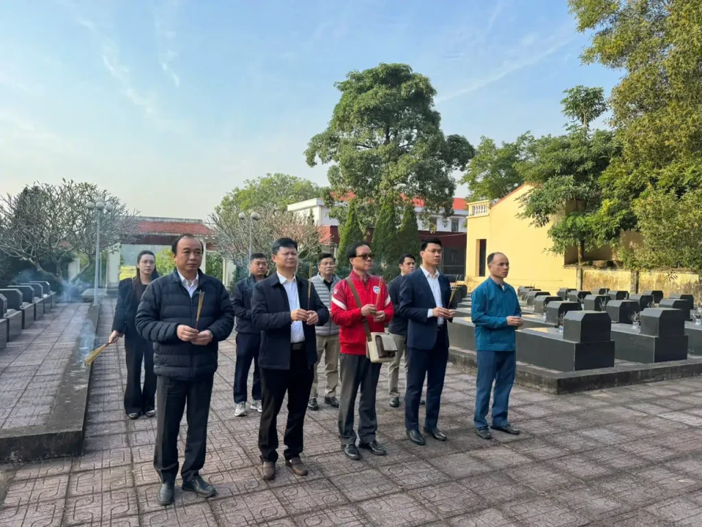Đại diện lãnh đạo và tuổi trẻ Đại học Kinh tế Quốc dân tổ chức Lễ dâng hương tại Đài tưởng niệm các Anh hùng, Liệt sỹ xã Quang Trung