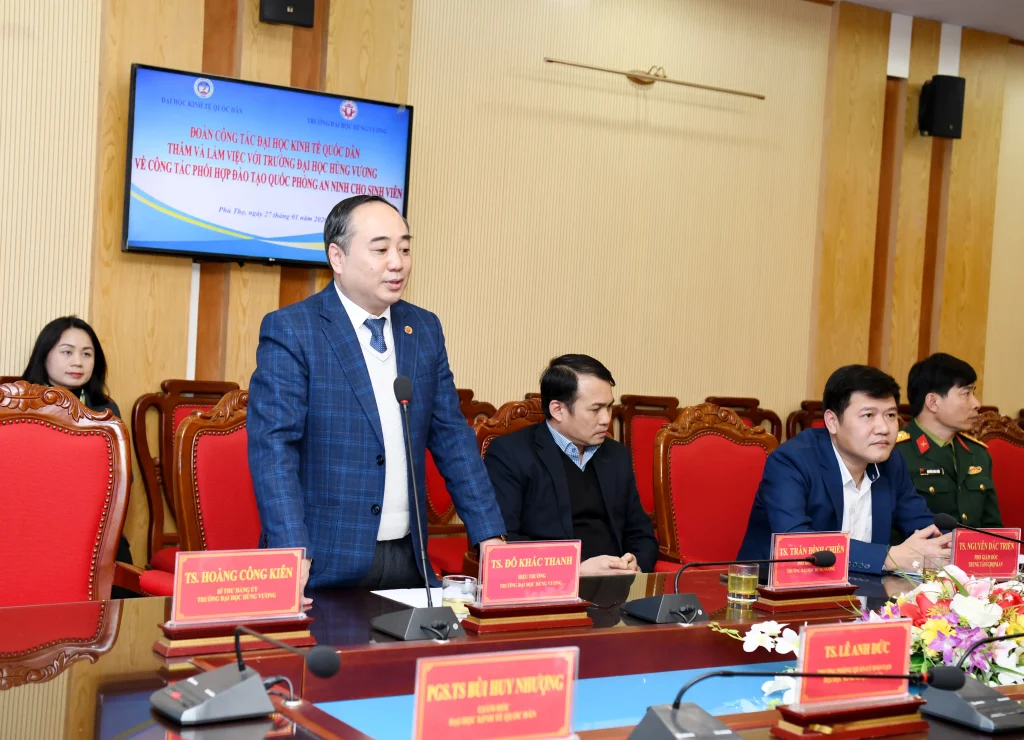 Tại buổi làm việc với lãnh đạo các Trung tâm GDQP&AN, PGS.TS Bùi Huy Nhượng – Giám đốc Đại học đã gửi lời cảm ơn tới lãnh đạo và đội ngũ cán bộ, giảng viên các đơn vị vì sự phối hợp chặt chẽ, trách nhiệm và sự hỗ trợ hiệu quả trong việc tổ chức giảng dạy, rèn luyện, tạo điều kiện học tập tốt nhất cho sinh viên Đại học Kinh tế Quốc dân trong suốt nhiều năm qua.