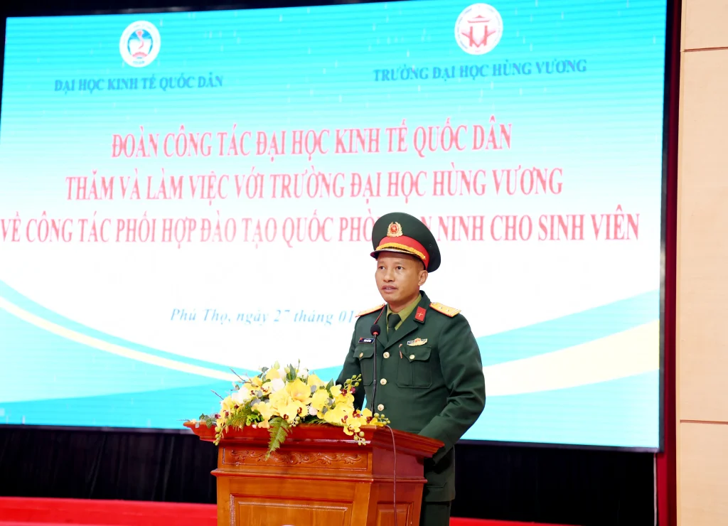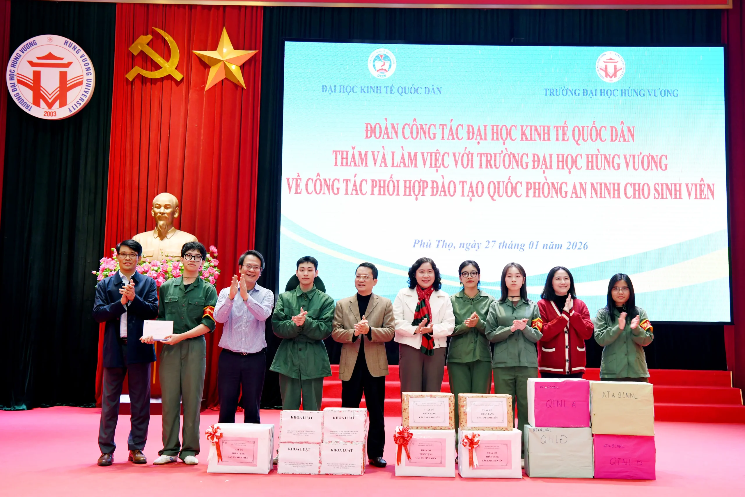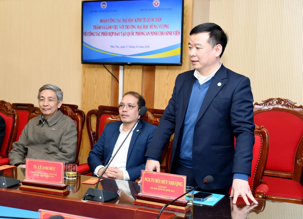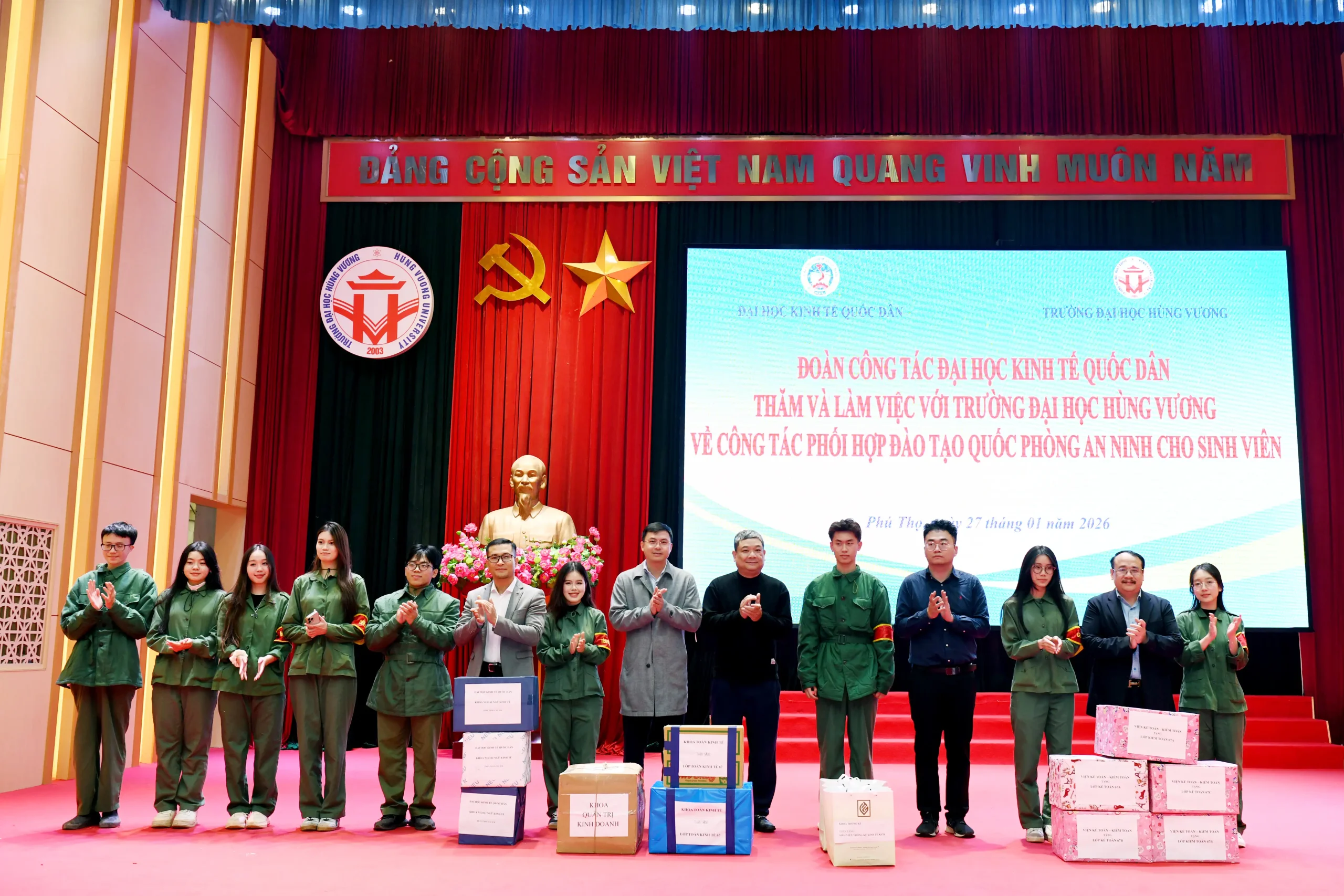 Ngày 27/01/2026, Đoàn công tác Đại học Kinh tế Quốc dân do PGS.TS Bùi Huy Nhượng – Giám đốc Đại học dẫn đầu đã đến thăm và làm việc tại Trường Quân sự Bộ Tư lệnh Thủ đô và Trung tâm GDQP&AN – Trường Đại học Hùng Vương nhằm kiểm tra công tác đào tạo GDQP&AN cho sinh viên ĐHCQ khóa 67 cũng như gặp gỡ và tìm hiểu trải nghiệm của các bạn sinh viên NEU đang học tập tại đây sau hơn một tuần khai giảng khóa học.