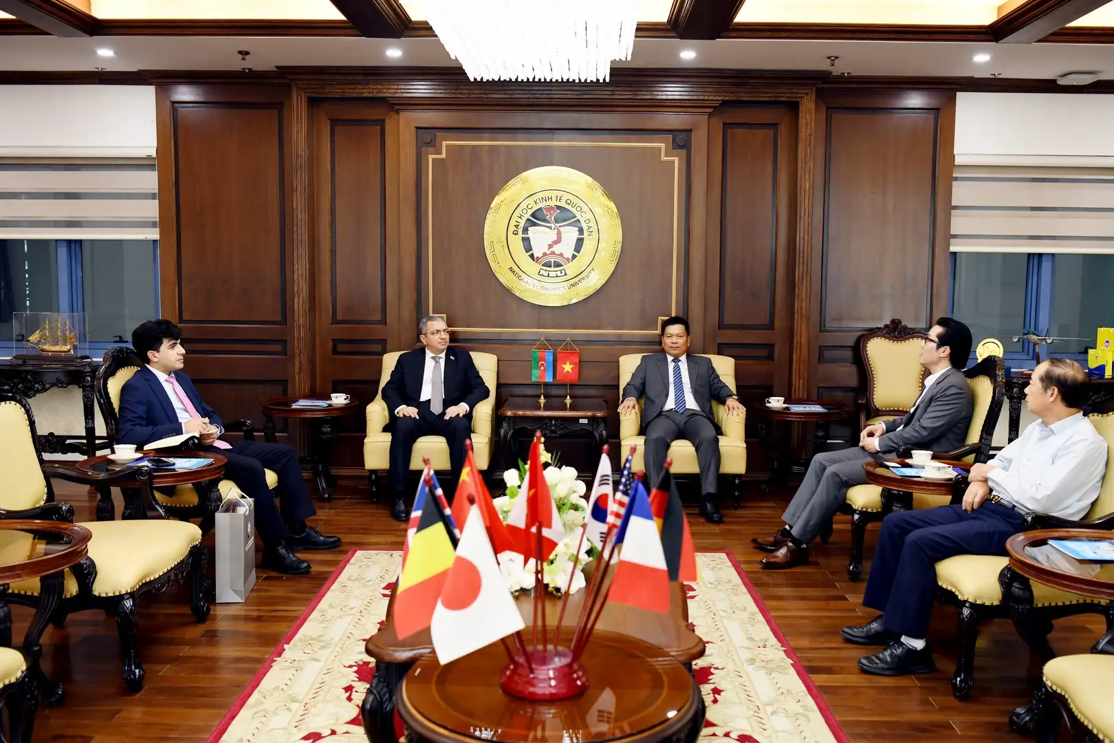 GS.TS Nguyễn Thành Hiếu – Phó Giám đốc Đại học Kinh tế Quốc dân trao đổi và trò chuyện cùng ngài Shovgi Kamal Oglu Mehdizade – Đại sứ Đặc mệnh toàn quyền Azerbaijan tại Việt Nam