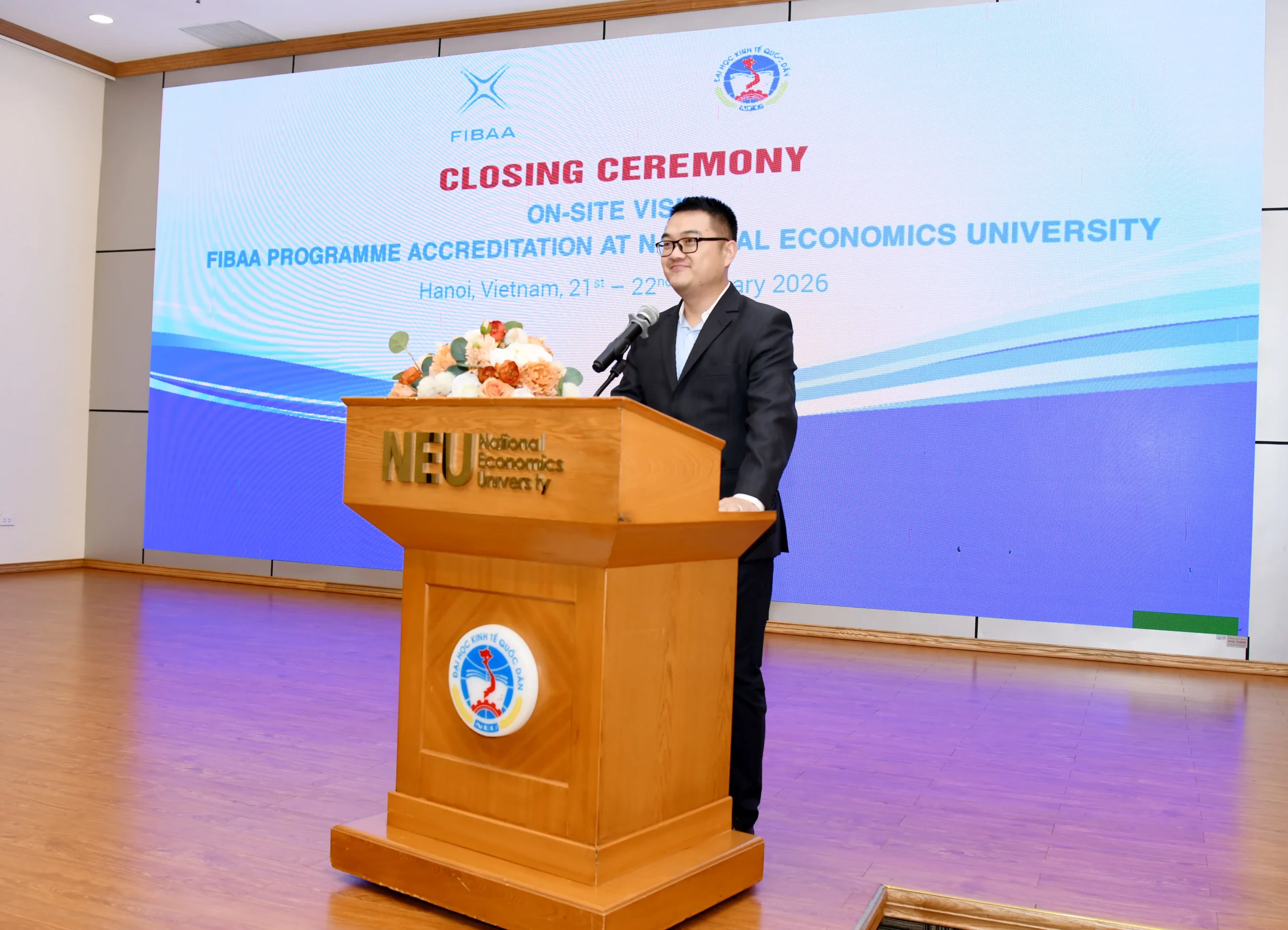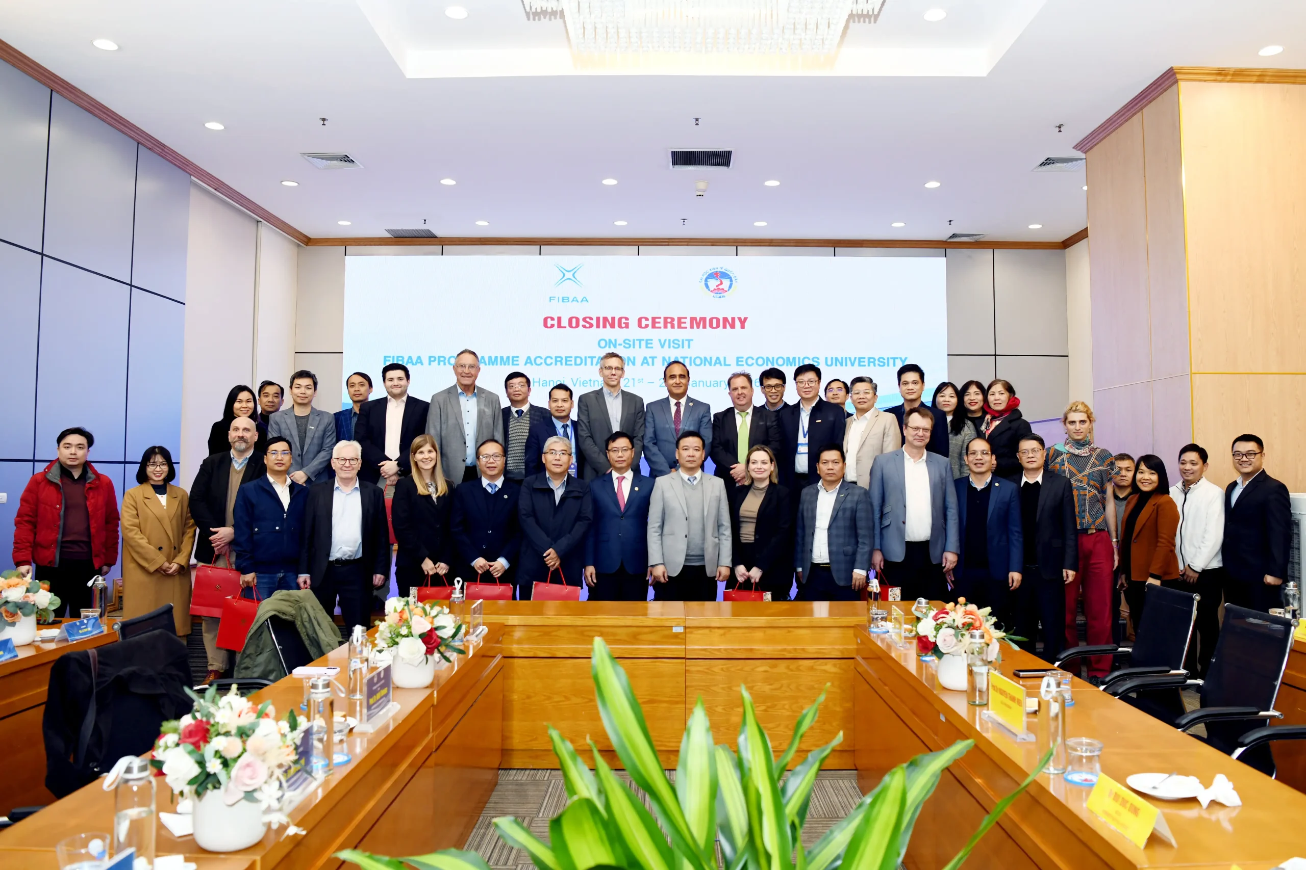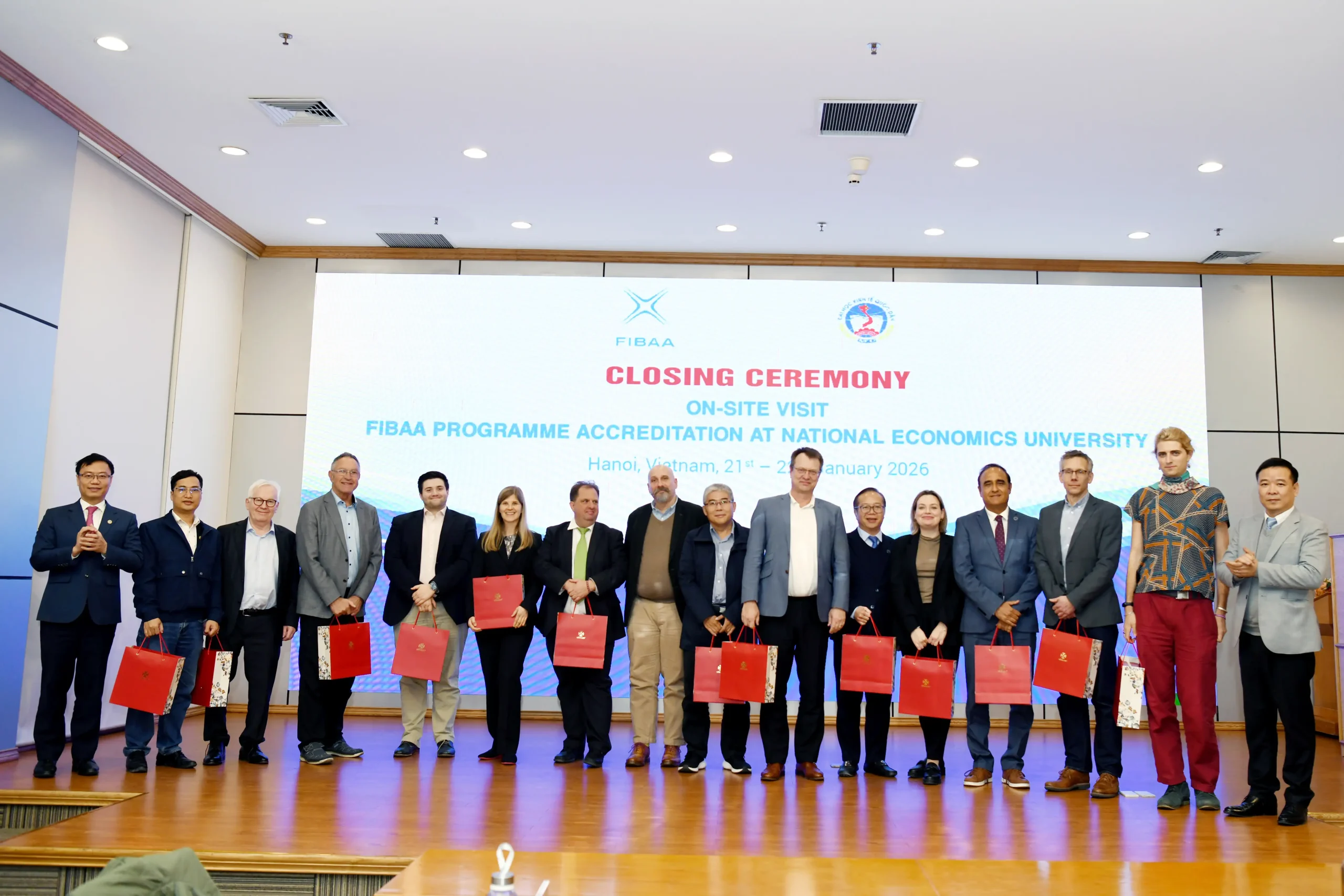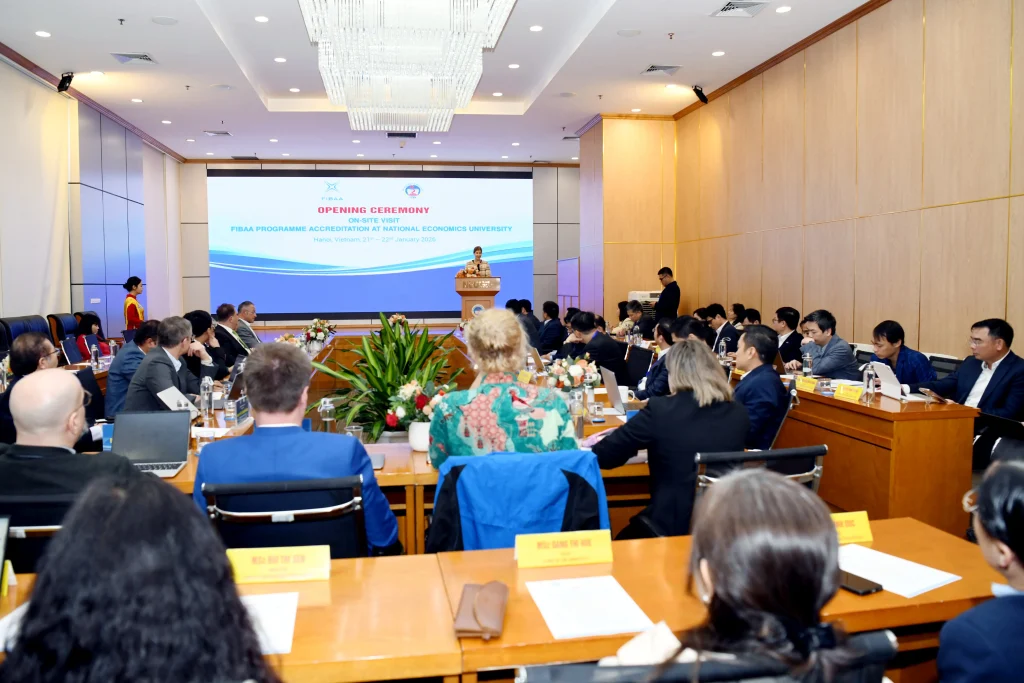 Trong hai ngày 21-22/01/2026, Đại học Kinh tế Quốc dân cùng hai đoàn chuyên gia của Tổ chức bảo đảm chất lượng giáo dục quốc tế FIBAA (Foundation for International Business Administration Accreditation) đã triển khai các hoạt động Đánh giá ngoài để kiểm định chất lượng 2 nhóm chương trình đào tạo theo Bộ tiêu chuẩn của Tổ chức FIBAA. Hoạt động Đánh giá ngoài diễn ra trực tiếp tại Đại học Kinh tế Quốc dân.
