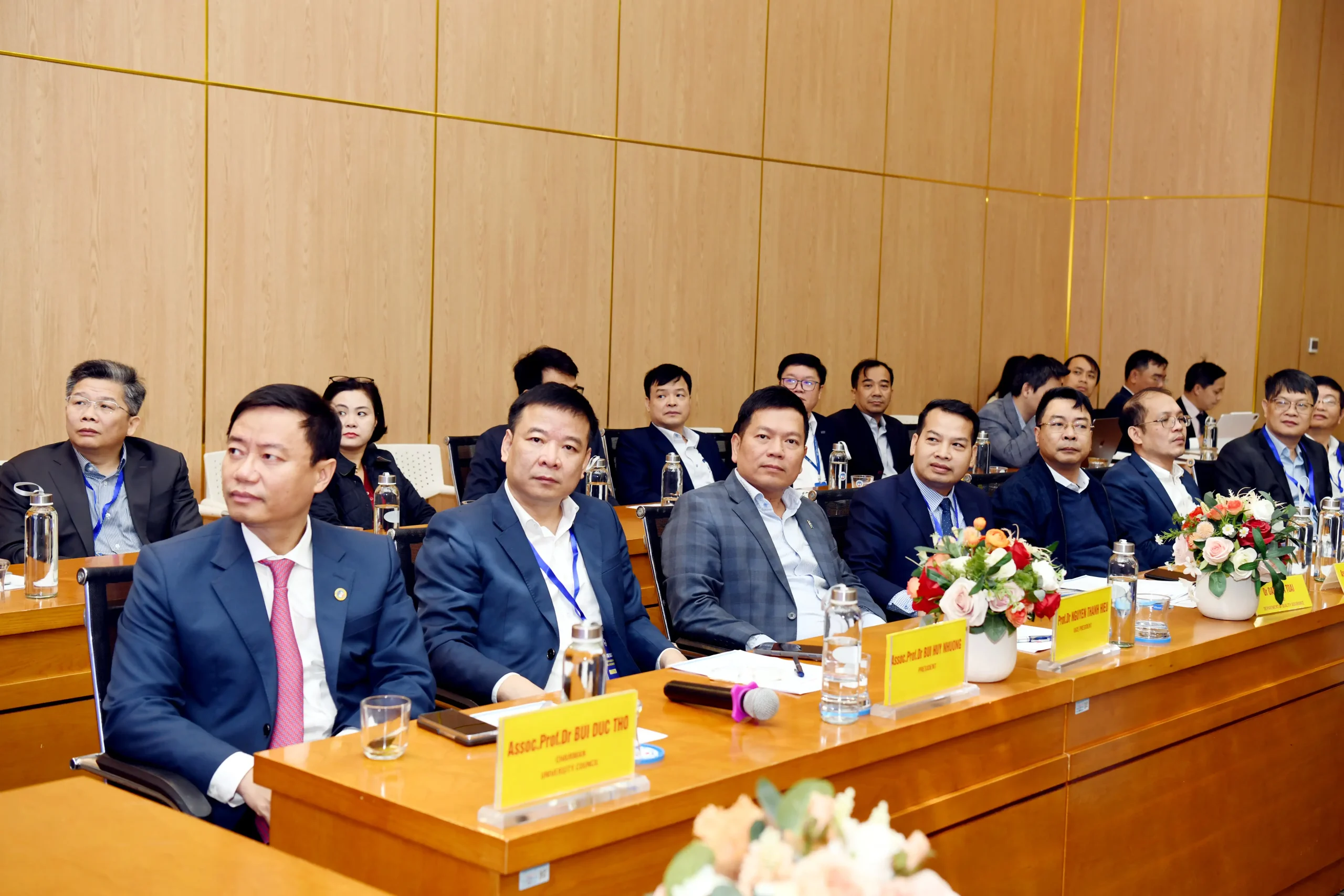 Về phía Đại học Kinh tế Quốc dân có: PGS.TS Bùi Đức Thọ – Bí thư Đảng uỷ; PGS.TS Bùi Huy Nhượng – Giám đốc Đại học; GS.TS Nguyễn Thành Hiếu – Phó Giám đốc Đại học; cùng đại diện lãnh đạo các Trường; Phòng ban, Khoa, Viện, Trung tâm, các tổ chức chính trị – xã hội; các thành viên Tổ phiên dịch; các điều phối viên các phiên phỏng vấn của hoạt động đánh giá ngoài.