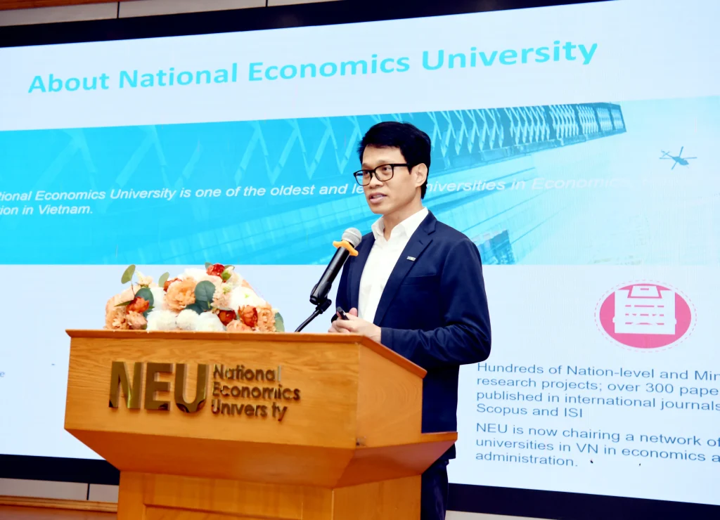 TS. Đào Thanh Tùng – Trưởng phòng Hợp tác Quốc tế giới thiệu về Đại học Kinh tế Quốc dân tại phiên khai mạc