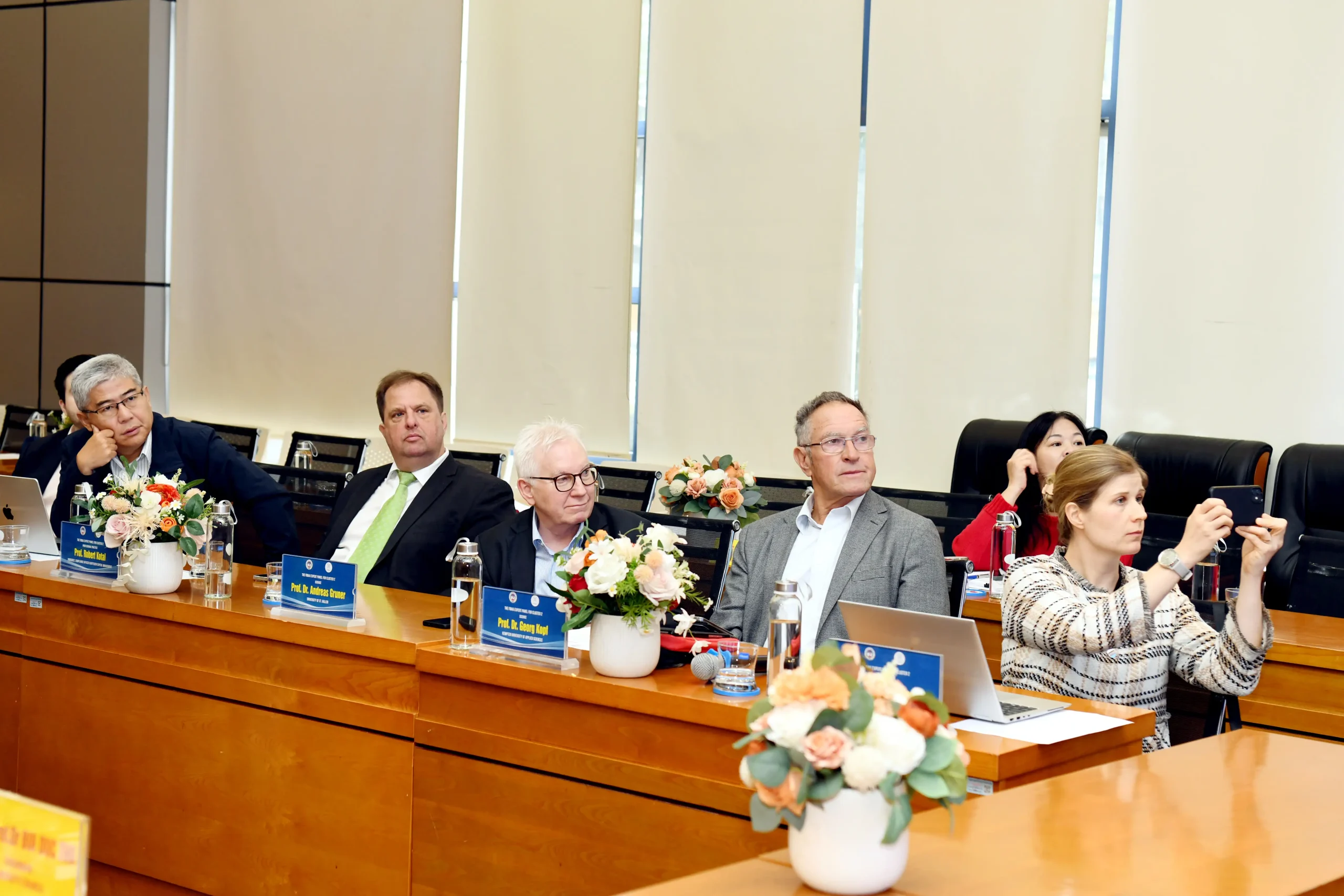 Tham dự hoạt động Đánh giá ngoài, về phía Tổ chức kiểm định chất lượng giáo dục quốc tế FIBAA có: bà Nina Rotermund – Trưởng phòng Kiểm định quốc tế, Trưởng đoàn đánh giá số 2; bà Yuliia Bleshmudt – Phó Trưởng phòng Kiểm định quốc tế, Trưởng đoàn đánh giá số 5; cùng các chuyên gia của hai đoàn đánh giá ngoài.