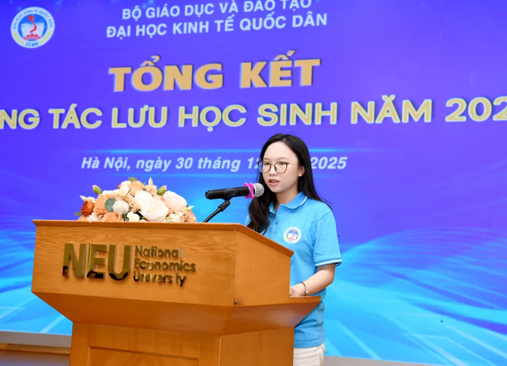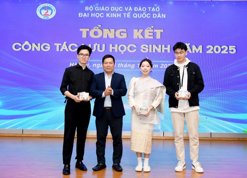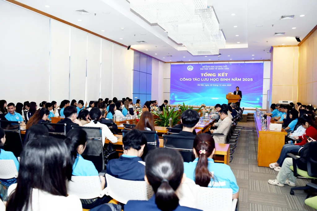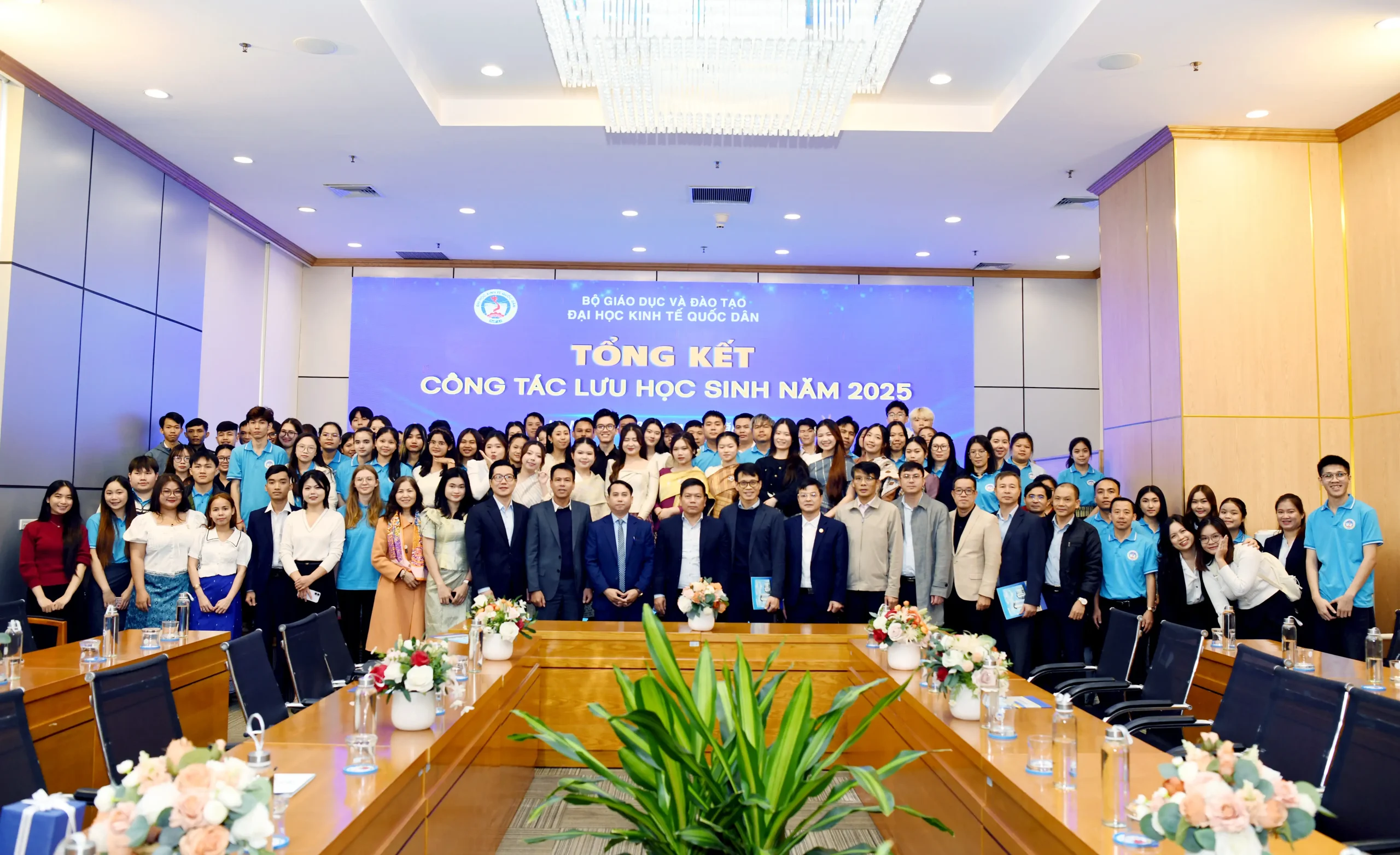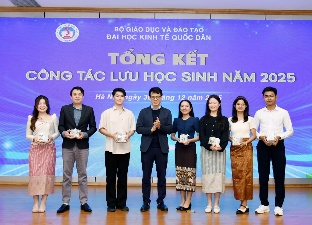Sáng ngày 30/12/2025, Đại học Kinh tế Quốc dân đã tổng kết công tác lưu học sinh năm học 2025 nhằm đánh giá những kết quả đã đạt được trong công tác đào tạo, quản lý và hỗ trợ lưu học sinh, đồng thời ghi nhận, biểu dương những cá nhân có thành tích tiêu biểu trong học tập và các hoạt động phong trào.