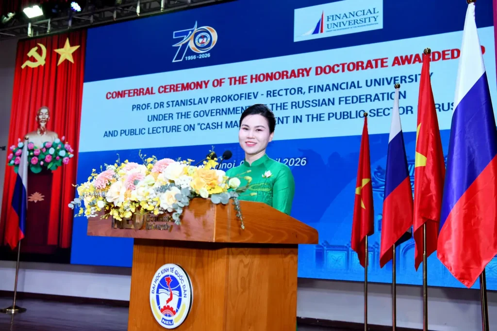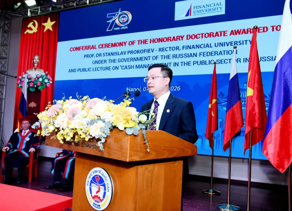 Năm 2026 đánh dấu cột mốc 70 năm thành lập Đại học Kinh tế Quốc dân – một dấu son quan trọng trong hành trình phát triển bền vững của nhà trường. Theo PGS.TS Bùi Huy Nhượng, việc trao tặng danh hiệu Tiến sĩ Danh dự cho GS.TS Stanislav Evgenievich Prokofiev là một trong những điểm nhấn đầu tiên trong chương trình hợp tác quốc tế năm 2026, thể hiện định hướng phát triển trong giai đoạn mới.