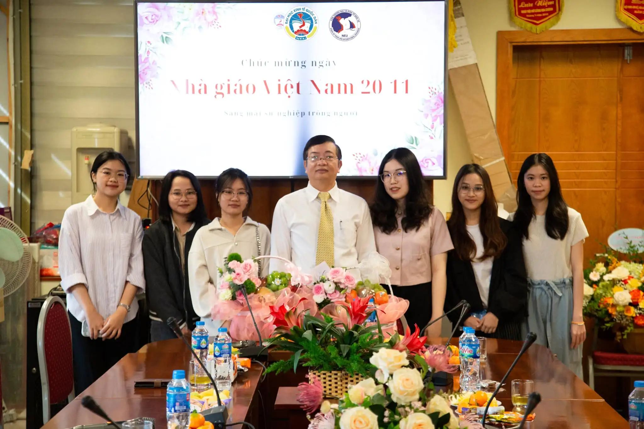GS.TS Tạ Văn Lợi và học trò chụp ảnh lưu niệm 20/11