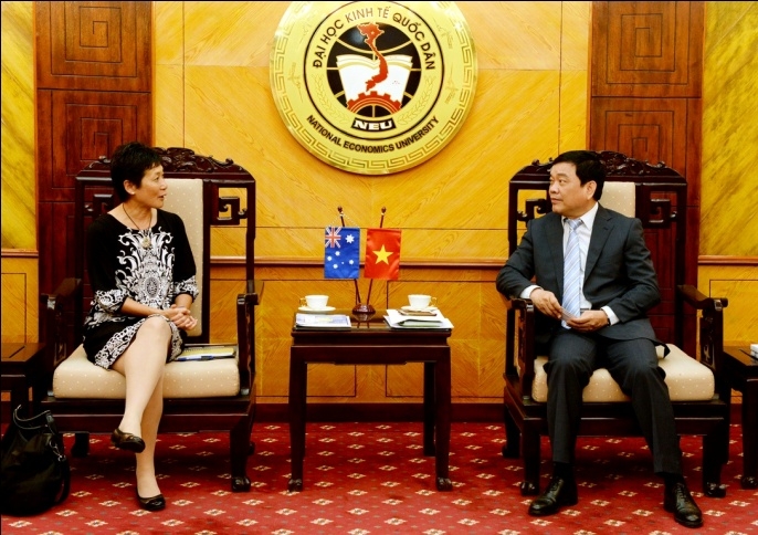 Ngày 20/06/2016, GS.TS Trần Thọ Đạt – Hiệu trưởng trường Đại học Kinh tế Quốc dân (ĐH KTQD) đã có buổi tiếp và làm việc với Đoàn cán bộ Đại sứ quán Úc tại Việt Nam. Đoàn do bà Tracy Harris – Tham tán Thương mại phụ trách giáo dục khu vực ASEAN làm trưởng đoàn, các thành viên gồm có bà Yvonne Chan – Ủy viên cao cấp Thương mại và bà Lê Thị Thu Hiền – Quản lý giáo dục
