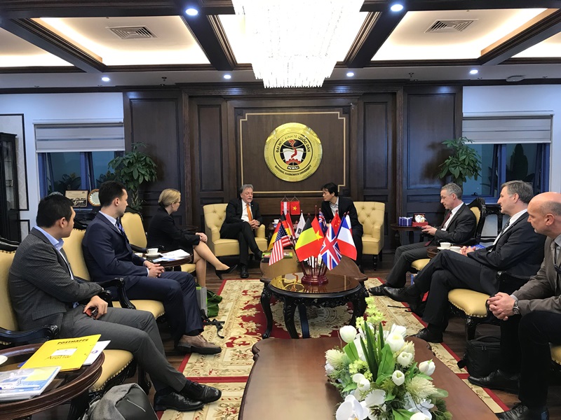 Cùng tham dự buổi làm việc, về phía Trường Đại học Khoa học ứng dụng Áo có TS Gerald Reisinger – Hiệu trưởng; GS.TS Andreas Zehetner – Phó Hiệu trưởng phụ trách QHQT; GS.TS Berthold Kerschbaumer – Viện trưởng Viện Thông tin truyền thông; GS.TS Peter Zeller – Trưởng bộ môn Kỹ thuật điện. Về phía Trường Đại học Halle Wittenberg, CHLB Đức có TS. Manja Hussner – Trưởng phòng QHQT; TS. Klaus Schmerler – Khoa Luật, Kinh tế và Kinh doanh. Về phía Trường Đại học Kinh tế Quốc dân còn có ThS Phạm Sỹ Long – Phó Trưởng phòng Hợp tác Quốc tế.