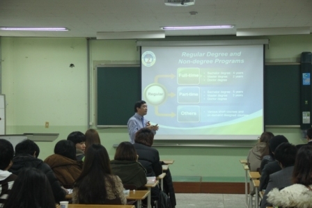 Trong ngày làm việc đầu tiên, GS.TS Trần Thọ Đạt cũng đã có buổi nói chuyện thú vị với hơn 100 sinh viên của Đại học Mokpo. Tại buổi nói chuyện Giáo sư đã giới thiệu về truyền thống phát triển của Trường Đại học Kinh tế quốc dân, các chuyên ngành đào tạo của Trường, năng lực đầo tạo, quy mô sinh viên hiện nay…Sau buổi nói chuyện, các sinh viên đang học tại Đại học Mokpo rất quan tâm đã gặp trực tiếp Giáo sư Đạt và mong muốn được học các bậc học cao hơn tại Đại học Kinh tế quốc dân.
