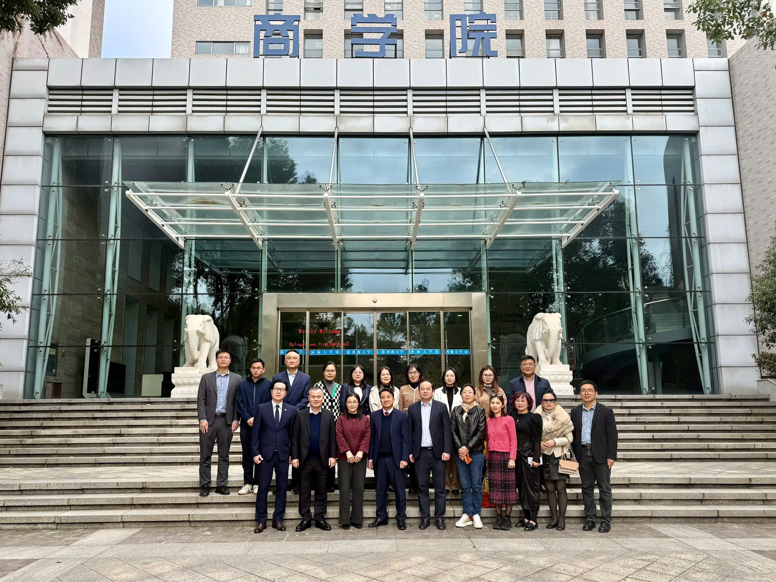 Sau buổi làm việc tại SUFE, đoàn công tác của Đại học Kinh tế Quốc dân tiếp tục đến thăm và làm việc với Đại học Hồ Hải, Nam Kinh.