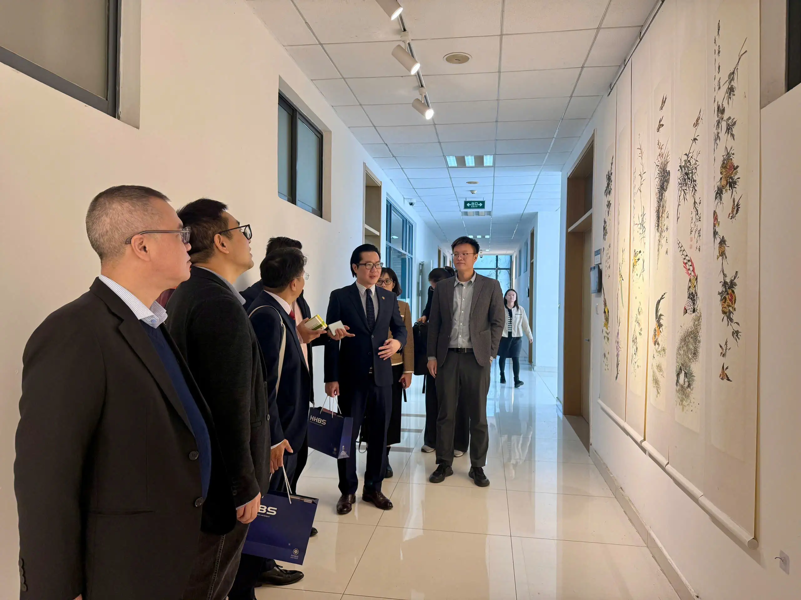 Đón tiếp đoàn có: GS. Zhang Changzheng – Hiệu trưởng Trường Kinh doanh; TS. Zhang Hairong – Hiệu trưởng Trường Ngôn ngữ và Văn hóa quốc tế, TS. Wu Yao – Phó phòng Hợp tác quốc tế; PGS Li Yiheng – Phó hiệu trưởng Trường Luật; cùng các cán bộ, giảng viên Đại học Hồ Hải.