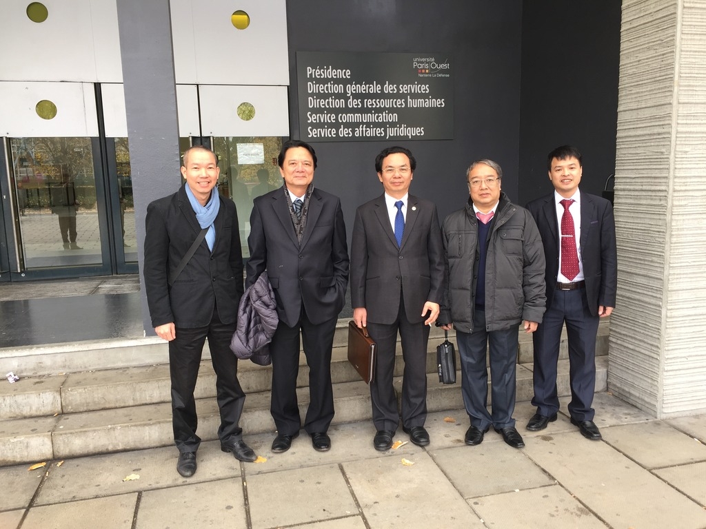 Nhận lời mời của Đại học Paris Ouest Nanterre la Defense (Đại học Paris 10, Cộng hòa Pháp), đoàn công tác của Trường Đại học Kinh tế quốc dân do PGS. TS. Hoàng Văn Cường – Phó Hiệu trưởng làm trưởng đoàn đã sang thăm và làm việc với Đại học Paris 10 từ ngày 30/10 đến6/11/2015. Tham gia đoàn còn có PGS. TS. Vũ Kim Dũng – Trưởng khoa Kinh tế học; TS. Đinh Tiến Dũng – Phó Viện trưởng Viện Đào tạo Sau Đại học; PGS.TS. Lưu Thị Bích Ngọc – Viện trưởng Viện Dân số và các VĐXH; TS. Vũ Thành Hưởng, Chủ nhiệm Chương trình thạc sĩ Quản lý nhân sự liên kết giữa Đại học Kinh tế quốc dân và Đại học Paris 10. Cũng trong chuyến công tác, đoàn cũng đã có buổi thăm và làm việc với Đại học Paris-Est Créteil (Paris 12), và nhóm nghiên cứu của Đại học Paris 13.