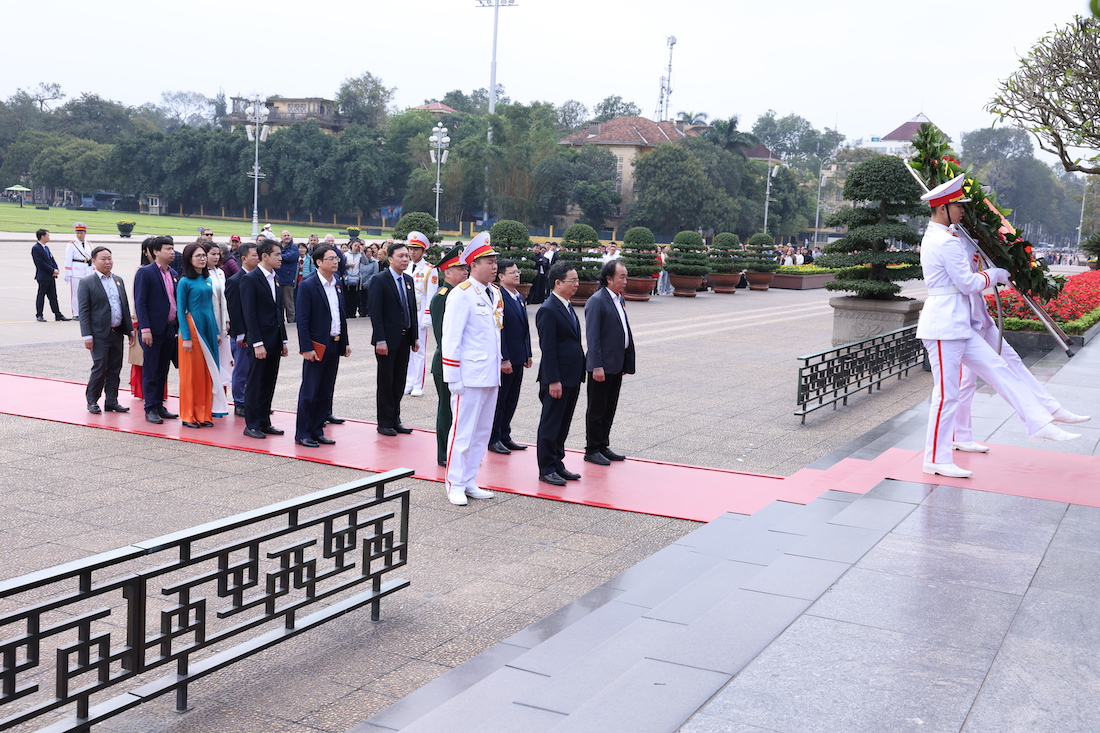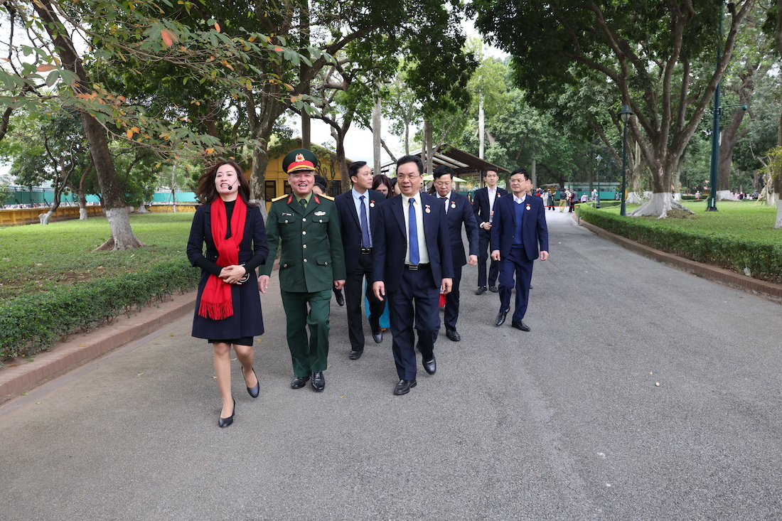 Tại khu di tích Lăng Chủ tịch Hồ Chí Minh, Đoàn đã được cán bộ Ban Quản lý Lăng hướng dẫn dâng hoa, vào Lăng viếng Chủ tịch Hồ Chí Minh và đến thăm nơi ở và làm việc của Bác tại Phủ Chủ tịch.