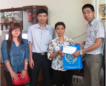 Đ/c Nguyễn Hoàng Hà – Bí thư Đoàn trường tặng quà cho gia đình chiến sĩ Quận Hồng Bàng |