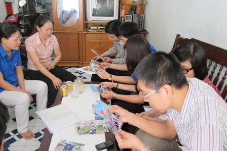 Các thành viên trong đoàn trường cùng xem tư liệu hình ảnh chiến sỹ từ Trường Sa gửi về |
