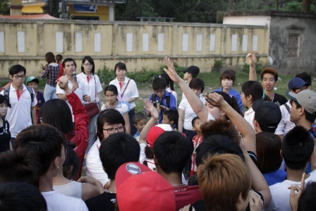 Đúng 15h00 chiều ngày 24/3/2013, đội sinh viên tình nguyện Liên chi đoàn Đào tạo Quốc tế đã có mặt tại Hội trại “Điểm hẹn Thanh niên” tại Xã Vân Từ, Huyện Phú Xuyên và tham gia ngay vào phần chấm trại cùng với Ban Tổ chức hội trại. Ngay sau phần chấm trại là các hoạt động trò chơi do ban tổ chức hội trại chuẩn bị, song phần thú vị nhất chưa dừng lại ở đó. Khi Ban tổ chức hội trại thông báo rằng đoàn sinh viên tình nguyện Liên chi đoàn Đào tạo Quốc tế, ĐH KTQD sẽ mang đến hội trại những trò chơi thú vị lần đầu tiên được tổ chức tại Xã thì thực sự không khí của hội trại đã nóng dần lên. Các bạn đoàn viên thanh niên, các em học sinh địa phương đã rất hào hứng tham gia các trò chơi sôi nổi và thú vị ấy.