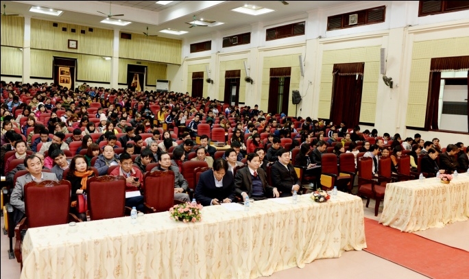 Lãnh đạo nhà trường và sinh viên tham dự hội nghị