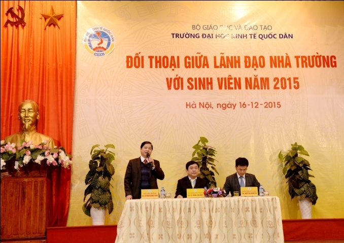 Ngày 16/12/2015, trường Đại học kinh tế quốc dân đã tổ chức buổi đối thoại giữa lãnh đạo nhà trường và sinh viên. Đây là diễn đàn thường niên được tổ chức nhằm phát huy tinh thần dân chủ, trao đổi giữa lãnh đạo nhà trường với sinh viên về những thành tựu và hạn chế sau một năm học, từ đó nâng cao chất lượng giảng dạy, chất lượng phục vụ của các đơn vị, góp phần vào sự phát triển chung của trường Đại học Kinh tế quốc dân.