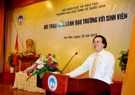 Nhằm nắm bắt tâm tư, nguyện vọng của sinh viên nhà trường về chế độ chính sách, các vấn đề liên quan đến tổ chức dạy và học cũng như tạo môi trường hoạt động cho các tổ chức đoàn thanh niên, Hội sinh viên v.v,…tối ngày  26/4/2012, tại Hội trường A, trường Đại học Kinh tế Quốc dân đã tổ chức buổi đối thoại trực tiếp với sinh viên.