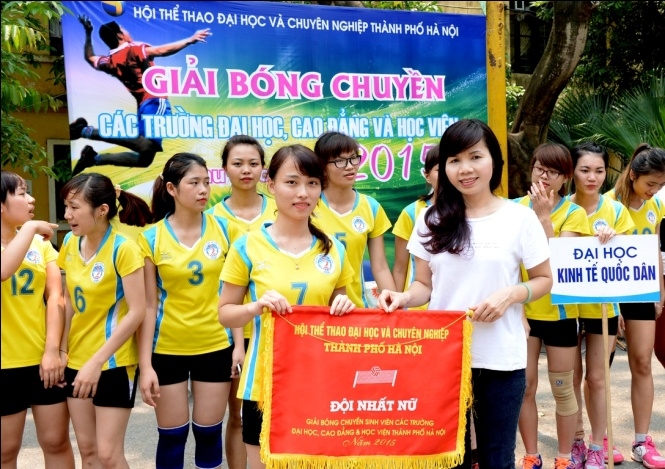Thực hiện kế hoạch hoạt động của hội TTĐH&CN TP Hà Nội năm 2015 nhằm góp phần vào việc phát triển phong trào thể thao trongsinh viên, tăng cường giao lưu, đoàn kết, tinh thần học hỏi lẫn nhau giữa sinh viên các trường Đại học trên địa bàn thành phố; trong 4 ngày, từ 16 đến 19/4/2015, trên sân thể thao KTX trường ĐH KTQD đã diễn ra các trận thi đấu nằm trong khuôn khổ Giải Bóng chuyền các trường Đại học, Cao đẳng và Học viện Khu vực Hà Nội năm 2015.