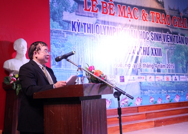 Sáng ngày 18/4, tại Hội trường (34 Lê Lợi, T.P Huế) đã long trọng diễn ra Lễ bế mạc và trao giải Kỳ thi Olympic Toán học sinh viên toàn quốc lần thứ 23. Tới dự Lễ bế mạc có GS.TSKH Bùi Văn Ga, Thứ trưởng Bộ Giáo dục & Đào tạo; GS.TSKH Phùng Hồ Hải, Phó chủ tịch kiêm Tổng thư ký Hội toán học Việt Nam; PGS.TS Nguyễn Dung, Phó Chủ tịch UBND tỉnh Thừa Thiên Huế; PGS.TS Nguyễn Văn Toàn, Giám đốc Đại học Huế cùng đại diện lãnh đạo các trường Đại học thành viên; đại diện lãnh đạo các Nhà tài trợ. Đặc biệt, có sự tham dự của các thầy cô là lãnh đạo đoàn, giáo viên chấm thi cùng 667 sinh viên đăng ký dự thi của 89 đoàn đến từ các trường đại học, cao đẳng và học viện trong toàn quốc.