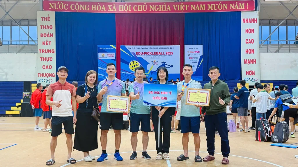 Tại Giải thể thao cán bộ, viên chức ngành Giáo dục EDU – Pickleball 2025 do Công đoàn Giáo dục Việt Nam tổ chức, diễn ra từ ngày 06 – 08/12/2025 tại Đại học Đà Nẵng, đội tuyển Pickleball viên chức, người lao động Đại học Kinh tế Quốc dân đã ghi dấu ấn mạnh mẽ với thành tích vô cùng ấn tượng.
