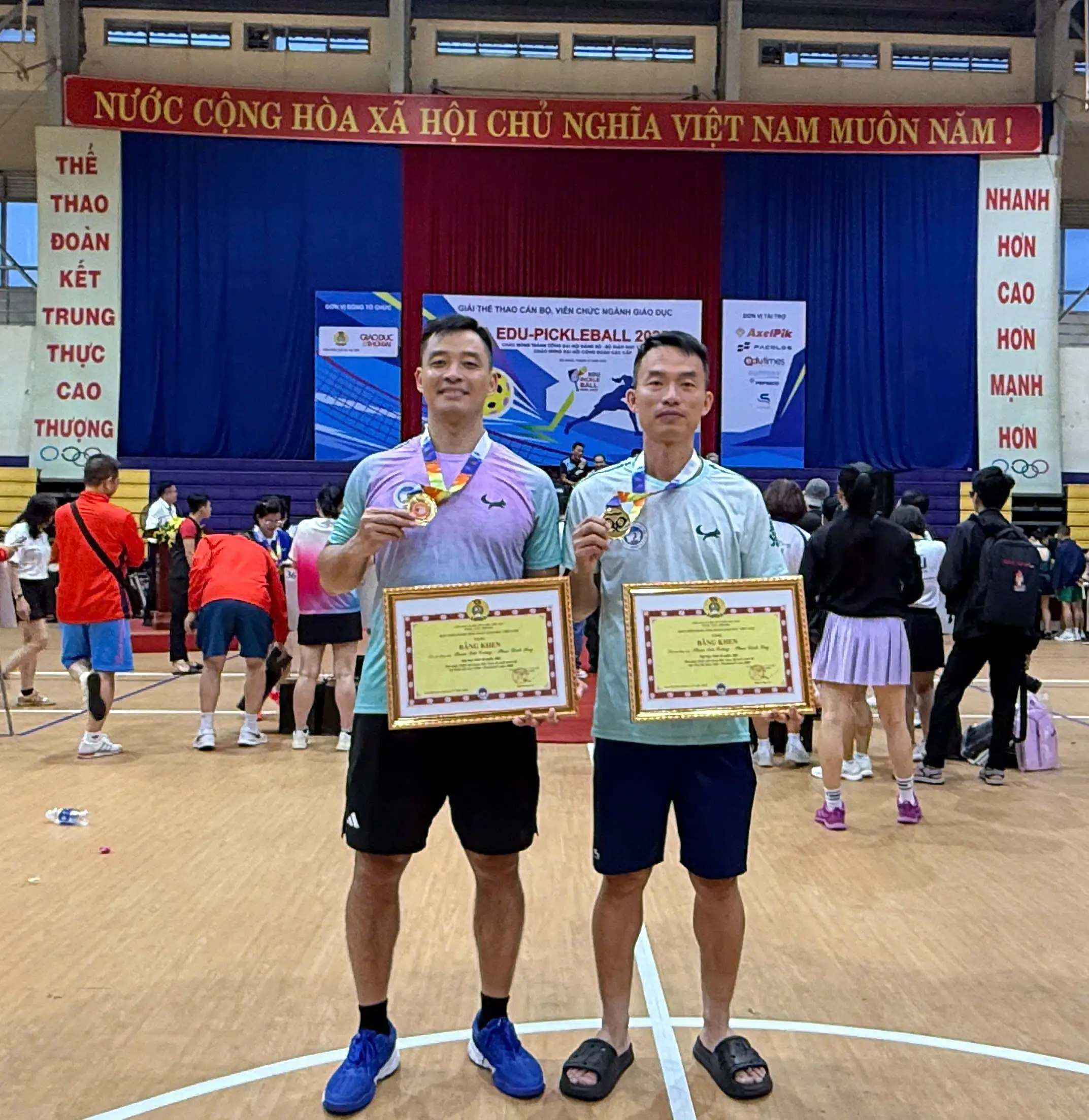 Thầy Phạm Đức Cường và thầy Phan Đình Huy, Bộ môn Giáo dục Thể chất xuất sắc giành chức vô địch đôi nam tại giải Edu – Pickleball toàn quốc 2025