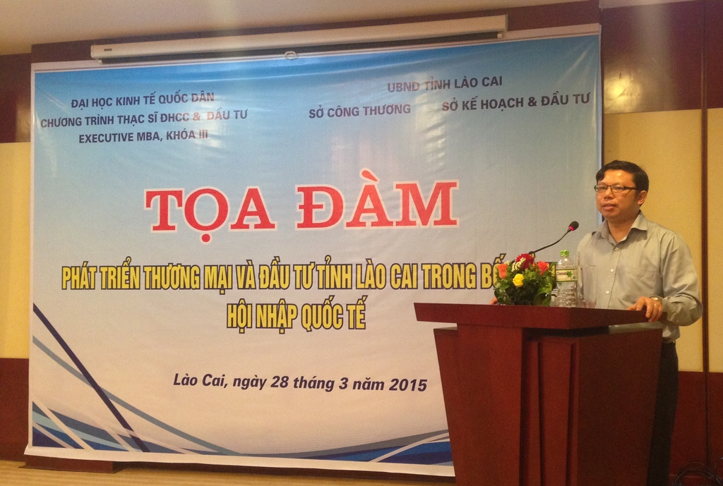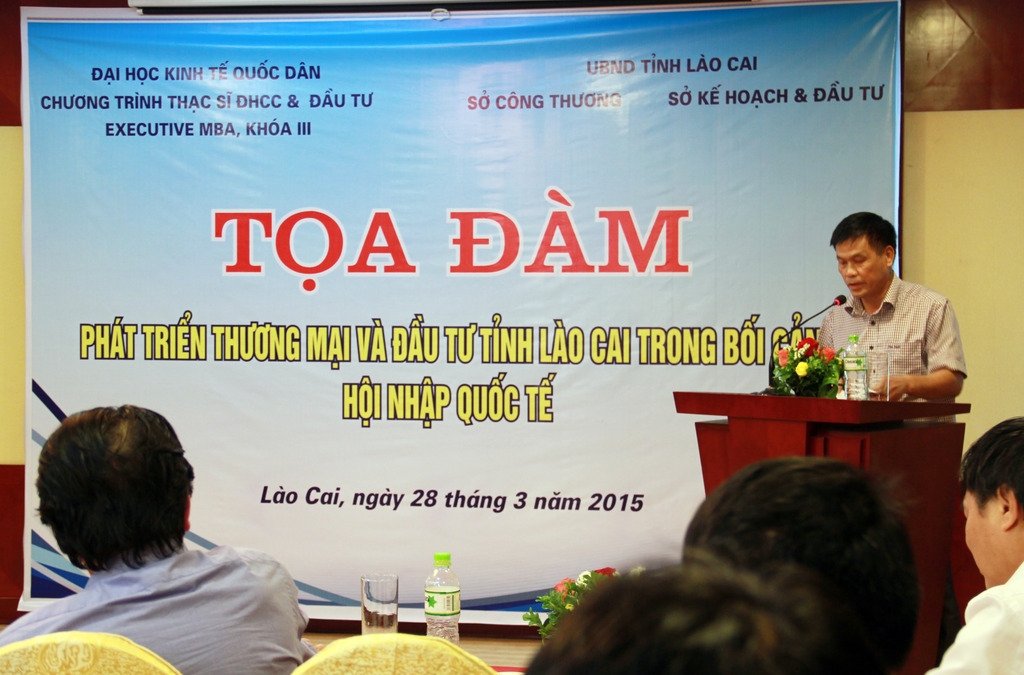 Trên cơ sở kết quả từ các buổi tham vấn và khảo sát thực tế các trọng điểm kinh tế của tỉnh, Chương trình đã tổ chức rất thành công buổi tọa đàm "Phát triển Thương mại và Đầu tư tỉnh Lào Cai trong bối cảnh hội nhập quốc tế". Buổi tọa đàm có sự tham gia của nhiều lãnh đạo các sở, ngành của tỉnh, các giảng viên và học viên nhà trường. Các học viên đã nêu ra một số tồn tại và các tiềm năng và triển vọng lớn trong phát triển Thương mại và Đầu tư của tỉnh. Các ý kiến đưa ra đã nhận được sự quan tâm, ủng hộ nhiều góp ý của các lãnh đạo địa phương và các nhà khoa học Đại học Kinh tế quốc dân.