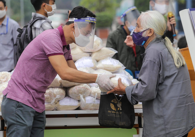 Chị K.T – một nhà hảo tâm chia sẻ, đọc được thông tin trên báo chí, tôi rất mừng khi tại Hà Nội đã có địa chỉ phát gạo miễn phí cho người dân. Trong buổi chiều, hai vợ chồng tôi đã đi mua gạo mang đến đây để quyên góp. Tôi mong rằng, tất cả mọi người cùng nhau chia sẻ, giúp đỡ những người có hoàn cảnh khó khăn hơn mình vượt qua được đại dịch nguy hiểm này.