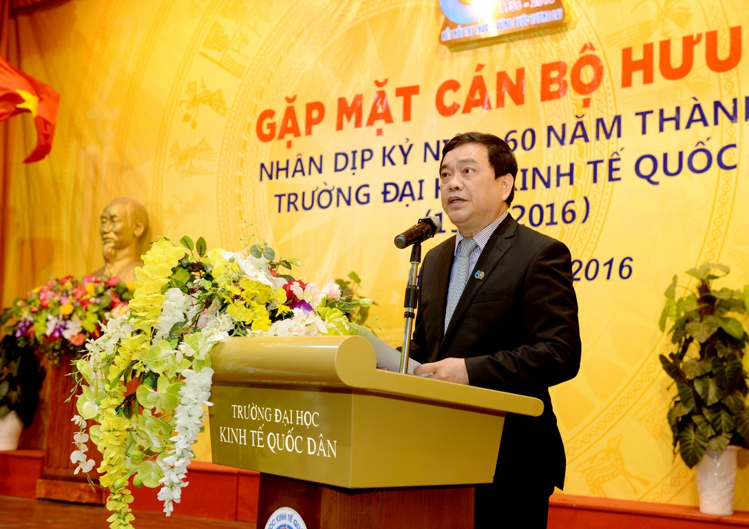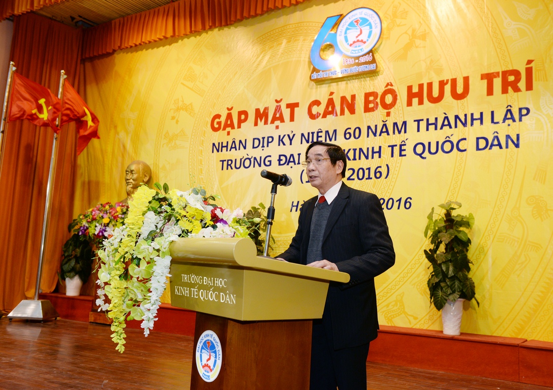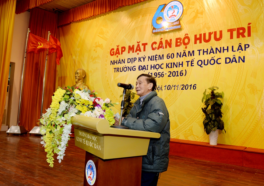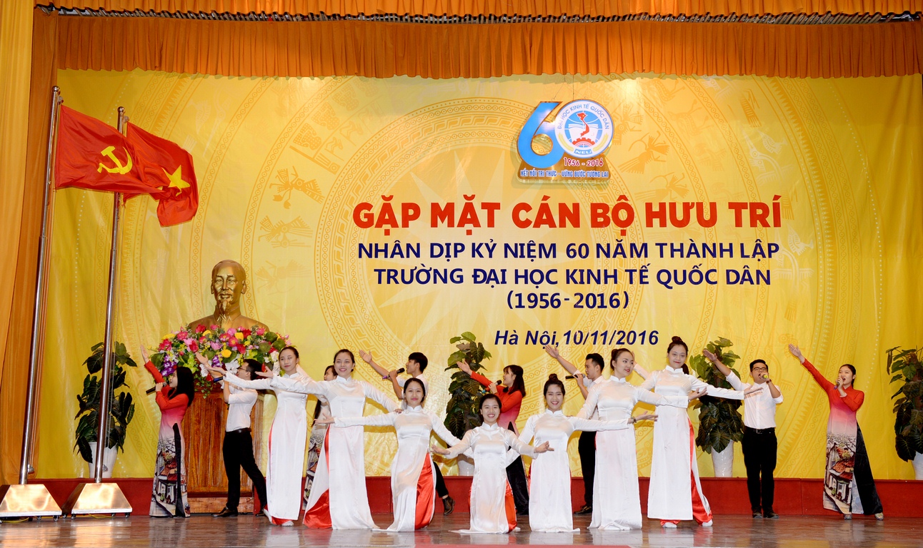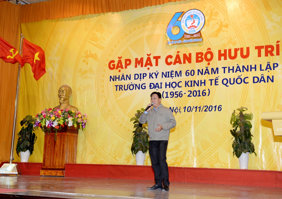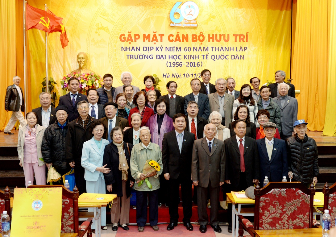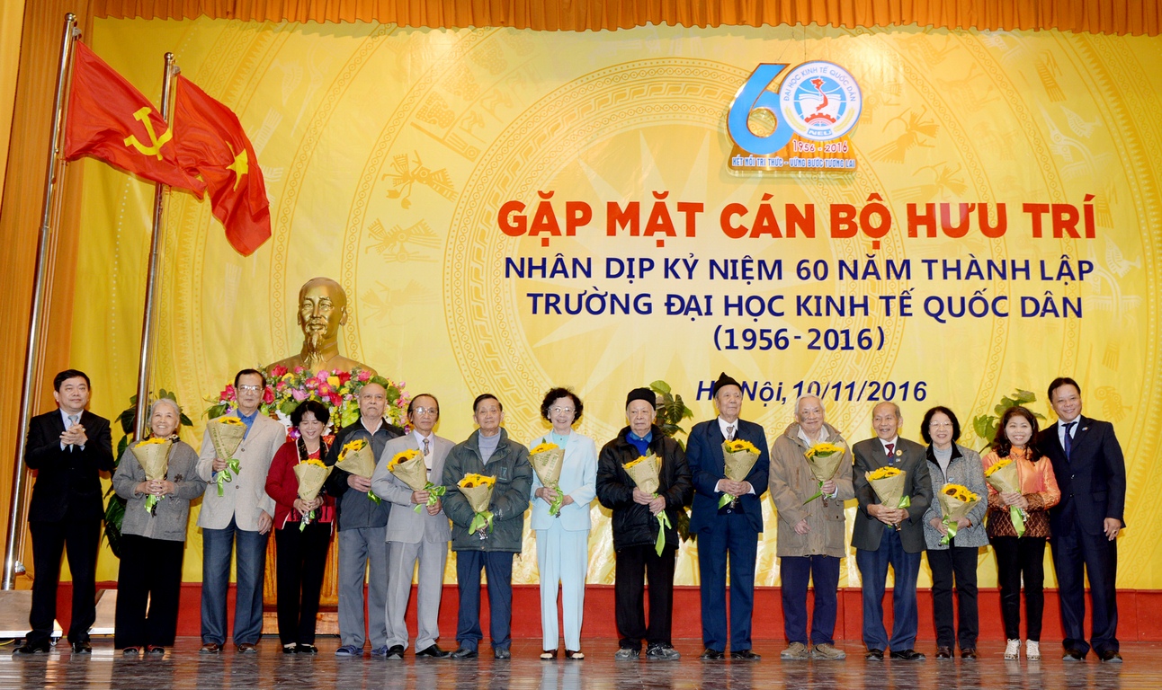Nằm trong các hoạt động kỷ niệm 60 năm thành lập trường, sáng 10 tháng 11 năm 2016, tại Hội trường A, trường Đại học Kinh tế Quốc dân đã long trọng tổ chức buổi Gặp mặt thân mật các cán bộ hưu trí đã làm việc và nghỉ hưu tại trường. Tham dự buổi lễ có GS.TS.Trần Thọ Đạt – Bí thư Đảng ủy, Hiệu trưởng; PGS.TS.Nguyễn Thanh Hà – Chủ tịch Hội đồng trường; PGS.TS. Phạm Hồng Chương – Phó Bí thư TT Đảng ủy, Phó Hiệu trưởng; PGS.TS.Hoàng Văn Cường – Phó Hiệu trưởng; PGS.TS.Trần Thị Vân Hoa – Phó Hiệu trưởng; TS.Nguyễn Hữu Đồng – Chủ tịch Công đoàn trường; GS.TS.Hoàng Ngọc Việt – Chủ tịch Hội Cựu chiến binh trường; TS.Bùi Trung Hải – Bí thư Đoàn Thanh niên nhà trường; GS.TSKH Lương Xuân Quỳ – nguyên Hiệu trưởng; GS.TS Nguyễn Đình Hương – nguyên Hiệu trưởng; GS.TSKH Lê Du Phong – nguyên Quyền Hiệu trưởng, Chủ tịch Hội cựu giáo chức trường; GS.TS Nguyễn Văn Nam – nguyên Hiệu trưởng; PGS.TS Ngô Đức Cát – nguyên Bí thư Đảng ủy; GS.TS Nguyễn Đình Phan – nguyên Bí thư Đảng ủy; GS.TS Nguyễn Thành Độ – nguyên Bí thư Đảng ủy; cùng đại diện lãnh đạo các đơn vị, các tổ chức chính trị xã hội trong trường, các thầy cô nguyên là lãnh đạo nhà trường qua các thế hệ và đông đảo các thầy, các cô, các cán bộ hưu trí của trường, các thầy cô hưu trí nguyên là cán bộ của trường vào công tác tại Trường ĐH Kinh tế TP.Hồ Chí Minh, trường Đại học Kinh tế – Đại học Đà Nẵng.