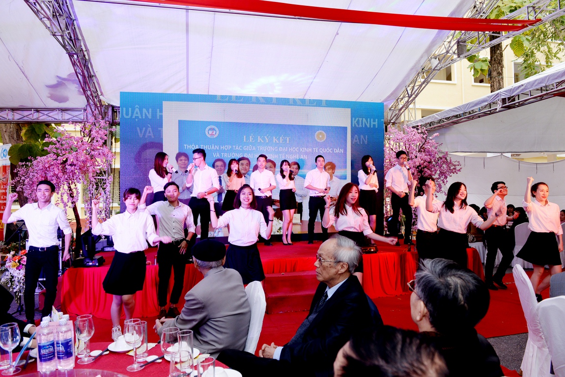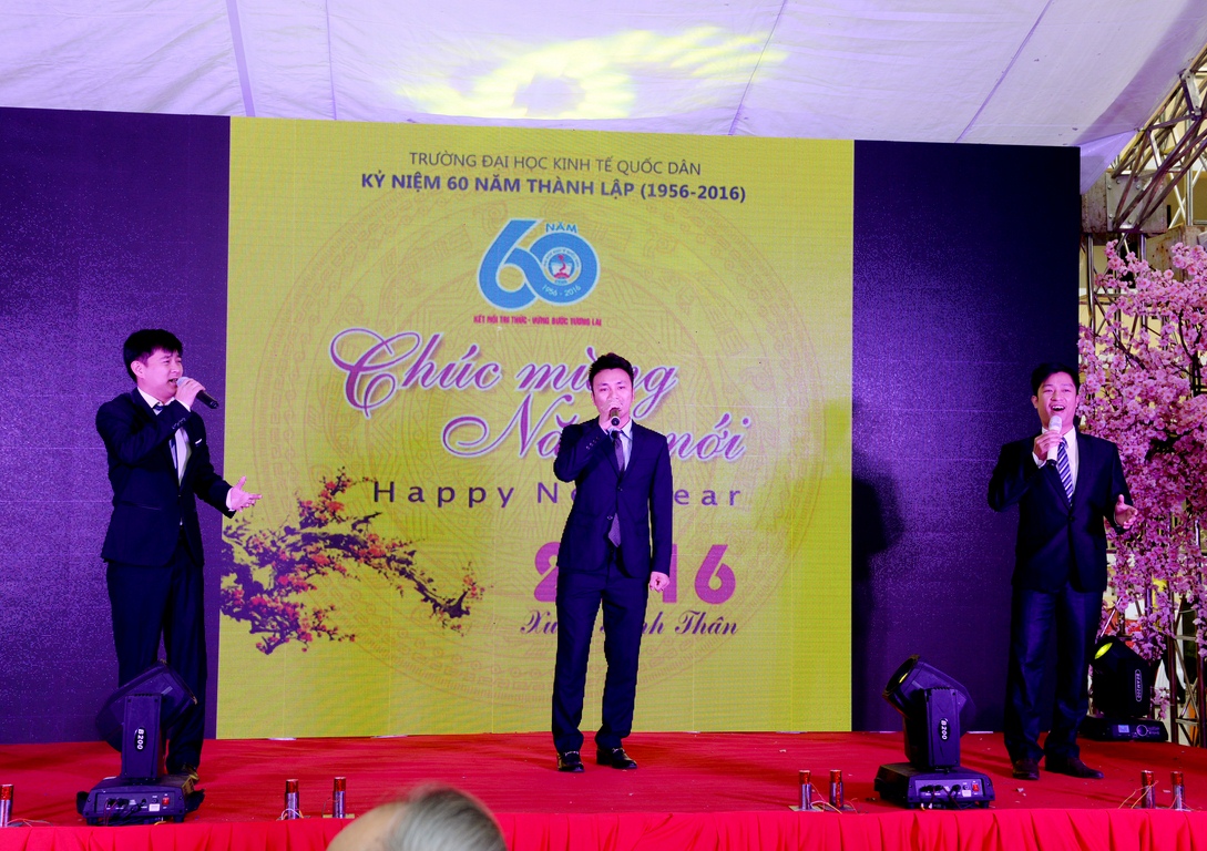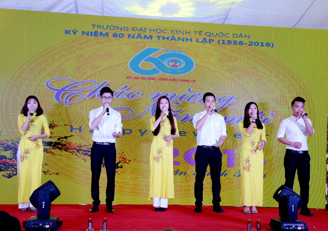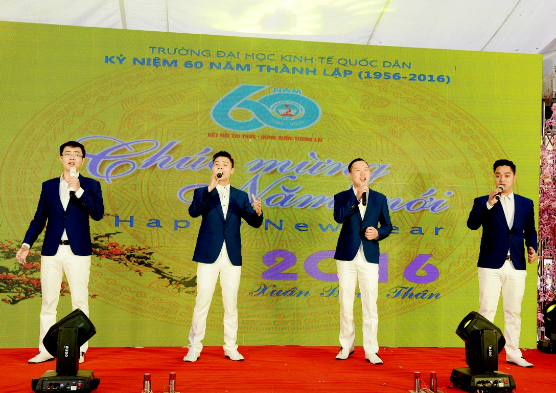 Những tiết mục ca múa nhạc mừng Đảng, mừng Xuân, mừng Đất nước do các nghệ sĩ, ca sĩ và cán bộ giảng viên trường ĐH KTQD thể hiện đã mang tới không khí mở đầu vui tươi, phấn khởi, rực rỡ sắc xuân cho chương trình “Chào năm mới Bính Thân 2016”.