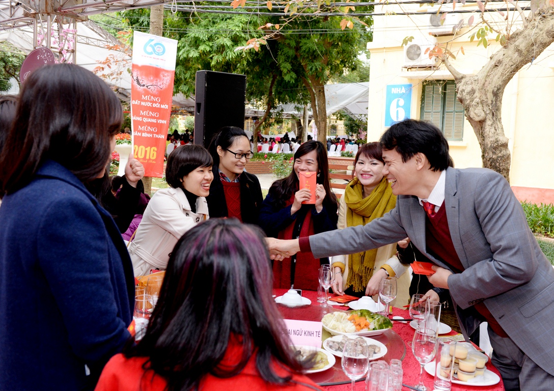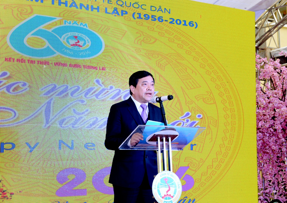 Hòa chung không khí toàn Đảng, toàn dân mừng xuân mới Bính Thân, sáng ngày 15/2/2016 (Tức mùng 8 Tết Bính Thân), Lãnh đạo trường Đại học Kinh tế Quốc dân (ĐH KTQD) đã tổ chức buổi gặp mặt và chúc tết các đồng chí nguyên là Lãnh đạo trường, cán bộ, giảng viên, cựu sinh viên, học viên và sinh viên toàn trường trong chương trình “Chào năm mới Bính Thân 2016”.