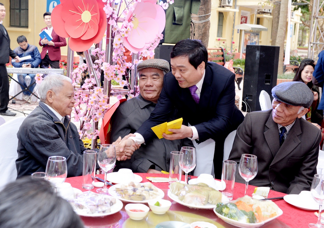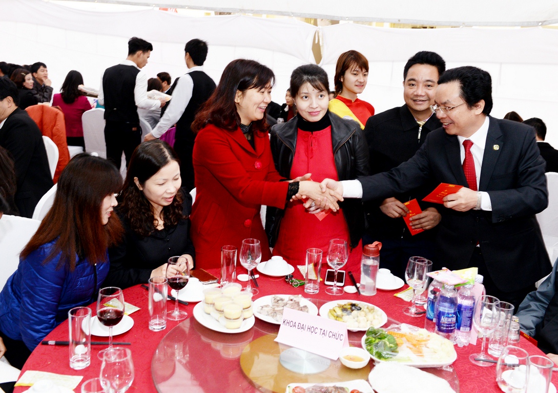 Chào xuân mới, hướng tới những thành công mới, GS.TS Trần Thọ Đạt đã cùng các đồng chí nguyên lãnh đạo nhà trường, các đồng chí trong Ban giám hiệu, các cán bộ giảng viên, học viên và sinh viên trường ĐH KTQD nâng cốc chúc mừng năm mới 2016 – một năm đặc biệt với nhiều hoạt động lớn kỉ niệm 60 năm ngày thành lập Trường. Trong tiết Xuân ấm áp, hân hoan, lòng người cùng hướng về một mục tiêu: khơi dậy và thúc đẩy một giai đoạn phát triển mới của trường ĐH KTQD với khí thế mới và sức mạnh mới mạnh mẽ hơn trong thời gian tới.
