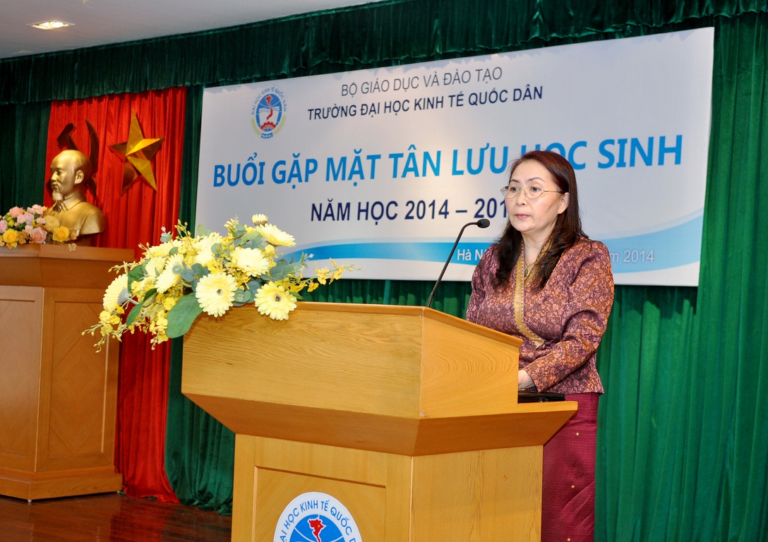 Trong không khí phấn khởi đón chào năm học mới, ngày 26/9/2014, Trường Đại học Kinh tế Quốc dân đã tổ chức buổi gặp mặt tân lưu học sinh đại học khóa 56, cao học khóa 23 và nghiên cứu sinh khóa 35 tại Phòng họp A, Gác 2 Nhà 10. Tham gia buổi gặp mặt, về phía đại biểu ngoài trường có: Bà Thonmy Duansakda – Bí thư thứ 2, Đại sứ quán CHDCND Lào, Ông Dương Minh Thư – Giám đốc Trung tâm Sinh viên Quốc tế. Về phía Trường Đại học Kinh tế Quốc dân có GS.TS Trần Thọ Đạt – Hiệu trưởng cùng đại diện lãnh đạo các phòng ban, khoa viện trong Trường.