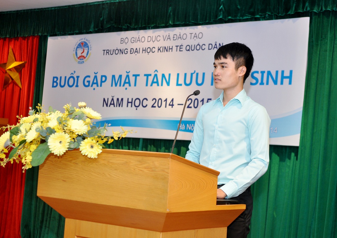 Đại diện cho các tân lưu học sinh, em Yang Raskmey – lưu học sinh Campuchia đã phát biểu. Theo Yang Raskmey, lúc mới đặt chân đến cổng trường Đại học Kinh tế Quốc dân, các em lưu học sinh đều có chung một tâm trạng háo hức, hồi hộp và lo lắng. Háo hức, hồi hộp vì các em đã được đến học tại ngôi trường mà các em luôn mơ ước. Lo lắng vì tất cả đều mới mẻ và xa lạ với các em. Tuy nhiên, sau khi nhận được sự hướng dẫn, chỉ bảo tận tình của các thầy cô giáo, các em đã nhanh chóng bắt nhịp với cuộc sống nơi đây. Các em cũng xin hứa sẽ cố gắng học tập thật tốt để sau này gặt hái được nhiều thành công trong sự nghiệp và trở thành những sứ giả góp phần xây dựng mối quan hệ tốt đẹp giữa các chính phủ.
