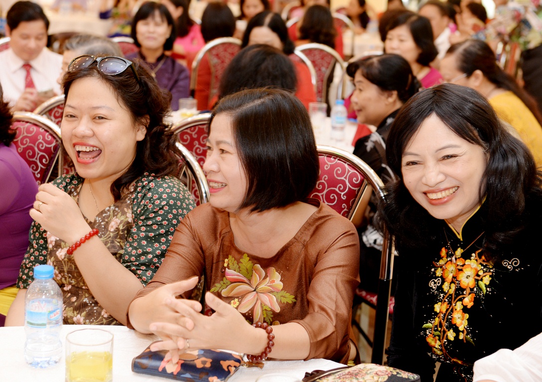 Phát biểu tại chương trình, GS.TS Đặng Thị Loan – Nguyên Phó Hiệu trưởng gửi lời cảm ơn tới lãnh đạo nhà trường đã có sáng kiến tổ chức buổi gặp mặt để cho các chị em có buổi gặp mặt đầy ý nghĩa. GS.TS.Đặng Thị Loan cũng tâm sự về những khó khăn của riêng phái nữ, đó là ngoài công việc xã hội, chị em còn phải lo công việc gia đình, con cái, bếp núc v.v…rất nhiều việc phải làm nên chị em phải cố gắng, nỗ lực rất nhiều mới có được những thành công như vậy; và mong rằng lãnh đạo nhà trường sẽ tiếp tục ủng hộvà yên tâm, động viên tin tưởng ở chị em, đã giao nhiệm vụ cho chị em phụ nữ là sẽ hoàn thành; và mong rằng sẽ tiếp tục nhận được sự quan tâm của lãnh đạo nhà trường, không chỉ có buổi giao lưu như thế này mà sẽ còn có nhiều hơn nữa các buổi giao lưu gặp gỡ, hội thảo để chị em có thể gặp gỡ, trao đổi cùng nhau.