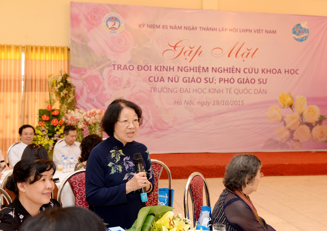 Sáng 19 tháng 10 năm 2015, trường Đại học Kinh tế Quốc dân đã tổ chức buổi Gặp mặt trao đổi kinh nghiệm nghiên cứu khoa học của nữ Giáo sư, Phó Giáo sư nhân dịp kỷ niệm 85 năm ngày thành lập Hội liên hiệp Phụ nữ Việt Nam. Có thể nói chương trình là một sự tri ân, là tấm lòng của Nhà trường đến với các thế hệ nữ Giáo sư, PGS đã và đang công tác tại trường, những người thầm lặng hy sinh, vượt qua bao khó khăn để khẳng định, uy tín về giảng dạy, nghiên cứu khoa học, bên cạnh đó vẫn làm tròn bổn phận của người phụ nữ trong gia đình và đây cũng chính là món quà tinh thần đầy ý nghĩa, nhân văn của Nhà trường gửi tới các nữ Giáo sư, PGS đã và đang công tác tại trường nhân dịp kỷ niệm ngày phụ nữ Việt Nam 20/10.